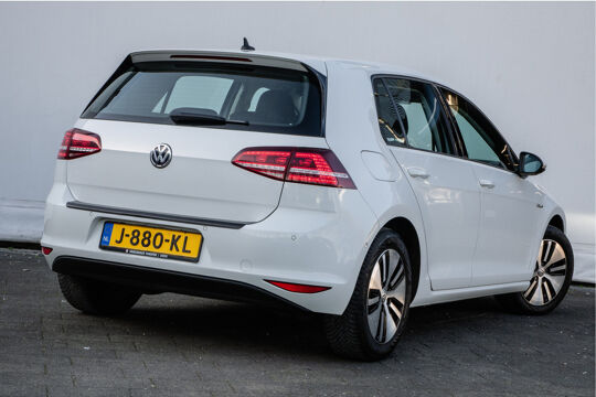 Volkswagen-rijders waarderen hun merk om de degelijkheid van de techniek en de uitmuntende rijkwaliteiten. Een Volkswagen is bovendien comfortabel en ruim, omdat hij altijd is ontworpen met de inzittenden als uitgangspunt. Een e-Golf zoals deze bijvoorbeeld, biedt ruim comfort voor vijf inzittenden. U zult verrast zijn door de power van de elektromotor. En stil! Volkswagen-rijders weten het: een VW is gebouwd voor duurzaamheid. Deze e-Golf is dan ook als nieuw, de onderhoudshistorie is bekend. De verwarmbare voorstoelen zijn een heerlijke extra optie, waarmee u uzelf en uw bijrijder een groot plezier doet. Een ommetje of een lange trip? De comfortstoelen zorgen elke keer voor een goede zithouding! Verder is de Volkswagen uitgerust met: 16 inch lichtmetalen velgen, LED koplampen, warmtewerend glas, dakspoiler, in delen neerklapbare achterbank en LED-achterlichten.