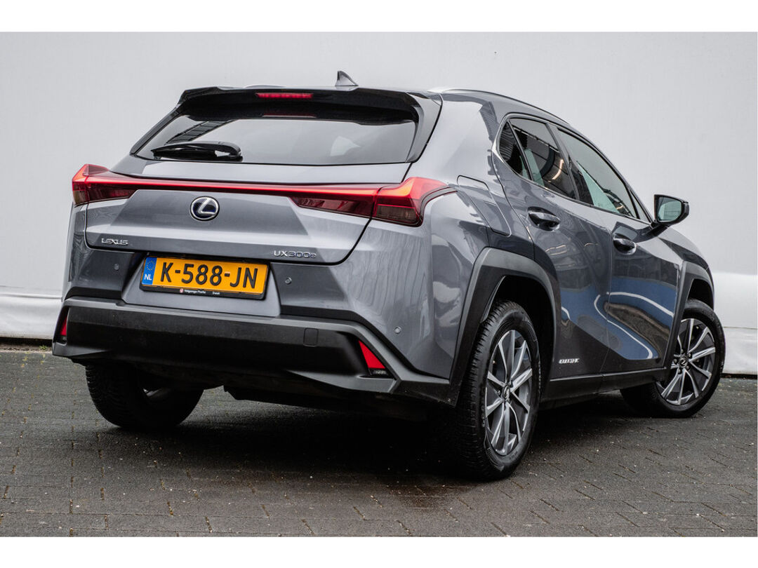 Intelligente technologie. Geen emissies en een fantastisch rijgedrag. Welkom in de Lexus UX. Fiscaal aantrekkelijk is de elektromotor, waarmee u niet alleen stil maar ook uitermate pittig kunt rijden. De krachtige motor geeft deze Lexus uitstekende prestaties. Deze Lexus UX is luxe afgewerkt. Kijk maar naar het lederen interieur! Tijdens gure dagen is het prettig zitten in de verwarmbare voorstoelen. In de winter wil iedereen mee. Zou dat komen door de verwarmde achterbank? Bij de zeer complete uitrusting van deze auto behoren ook 17 inch lichtmetalen velgen, LED koplampen, warmtewerend glas, in delen neerklapbare achterbank, LED-achterlichten en snelheidsafhankelijke stuurbekrachtiging.