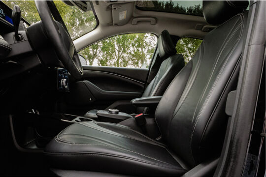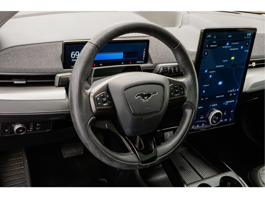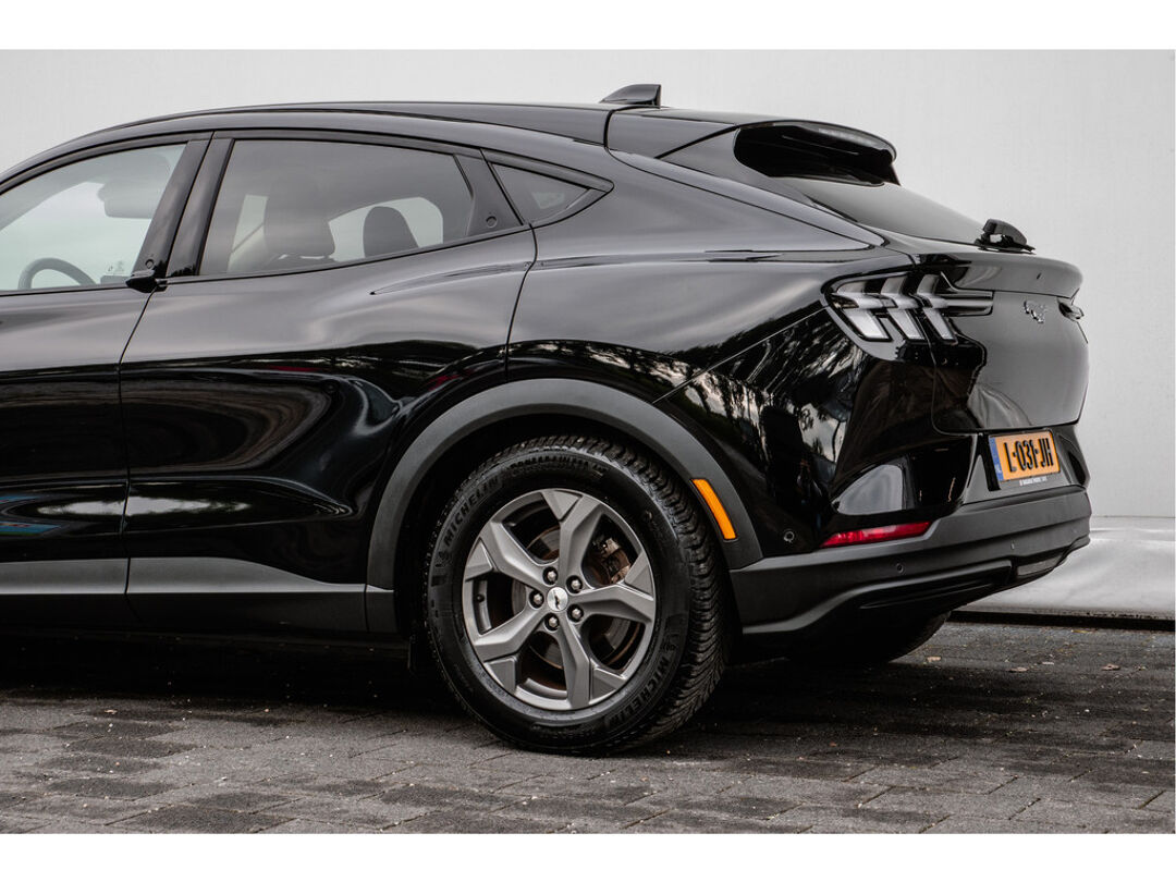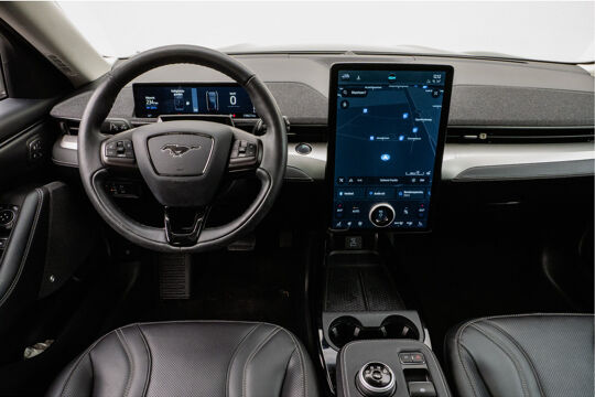 Druk het gaspedaal in en voel de fenomenale kracht van de elektromotor. In een elektrische auto rijdt u tegelijk dynamisch en ontspannen. De batterijtechniek heeft de afgelopen jaren enorme vooruitgang geboekt, zodat u met deze auto op een volle acculading echt ver kunt komen. En als u de auto 's avonds aan de lader koppelt, is hij de volgende dag weer helemaal vol. De krachtige motor geeft deze Ford uitstekende prestaties. Een weldaad voor u en uw bijrijder: deze Ford Mustang Mach-E heeft verwarmbare voorstoelen. Een handige voorziening op deze auto is de elektrische achterklep die u op afstand kunt openen. Zicht, licht en toch dicht! Een geweldige rijervaring met het glazen panoramadak. Verder is de Ford uitgerust met: 18 inch lichtmetalen velgen, LED koplampen, donker getint glas achter en LED-achterlichten.