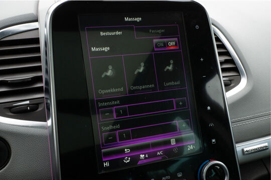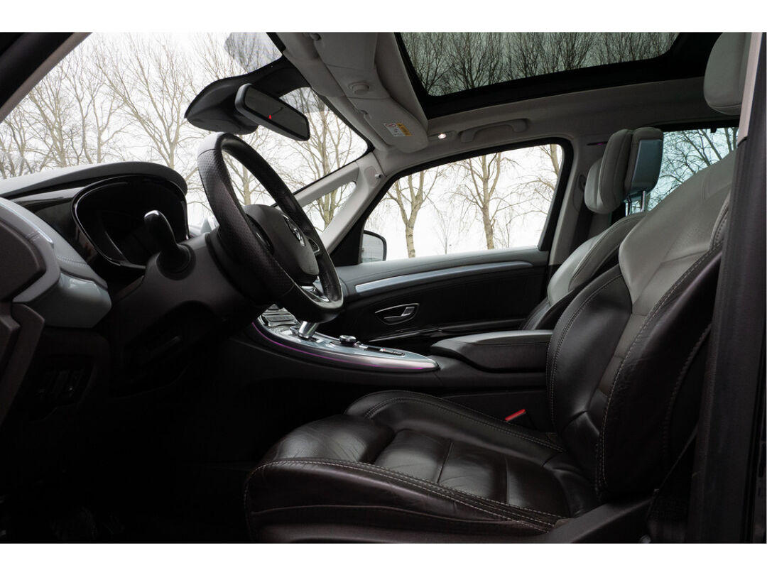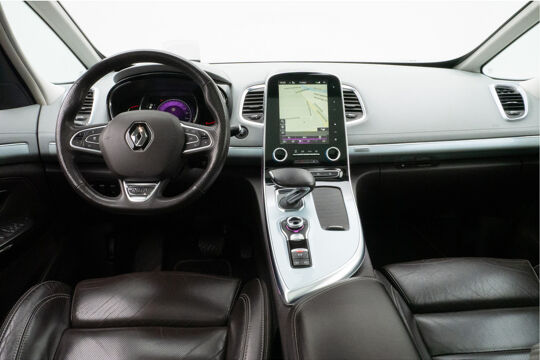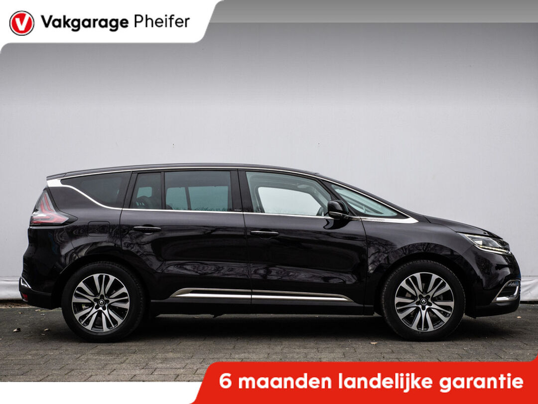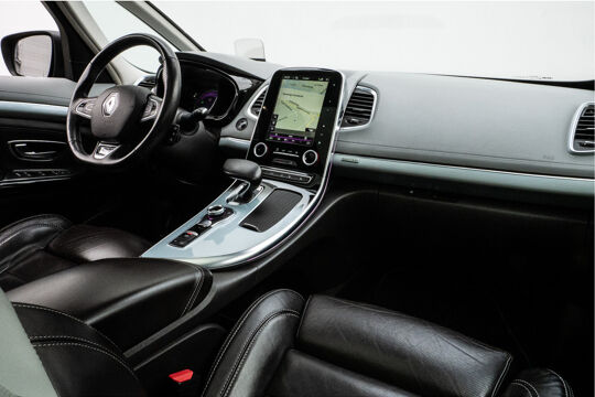 Voortreffelijke wegligging, een krachtige motor en een ruim, comfortabel interieur, dat zijn de eigenschappen waarmee de Renault Espace zijn uitstekende reputatie heeft verworven. De uitstekende prestaties van deze auto komen van de viercilinder benzinemotor en de automatische transmissie. Maximaal comfort en stijl krijgt u dankzij het lederen interieur. Op koude en donkere dagen zijn de verwarmbare voorstoelen een uitkomst. En ze hebben een massagefunctie bovendien. Zit u goed? De stoelen zijn eenvoudig instelbaar dankzij de elektrische bediening met geheugen. Vergezichten krijgen een extra dimensie door de panoramische voorruit. Ook achterin is iedereen snel op temperatuur door de verwarmde achterbank. Ook elektrisch bedienbaar glazen schuif-/kanteldak, 19 inch lichtmetalen velgen, LED koplampen, instelbare schokdempers, donker getint glas achter en LED-achterlichten horen tot de voorzieningen op deze auto.
