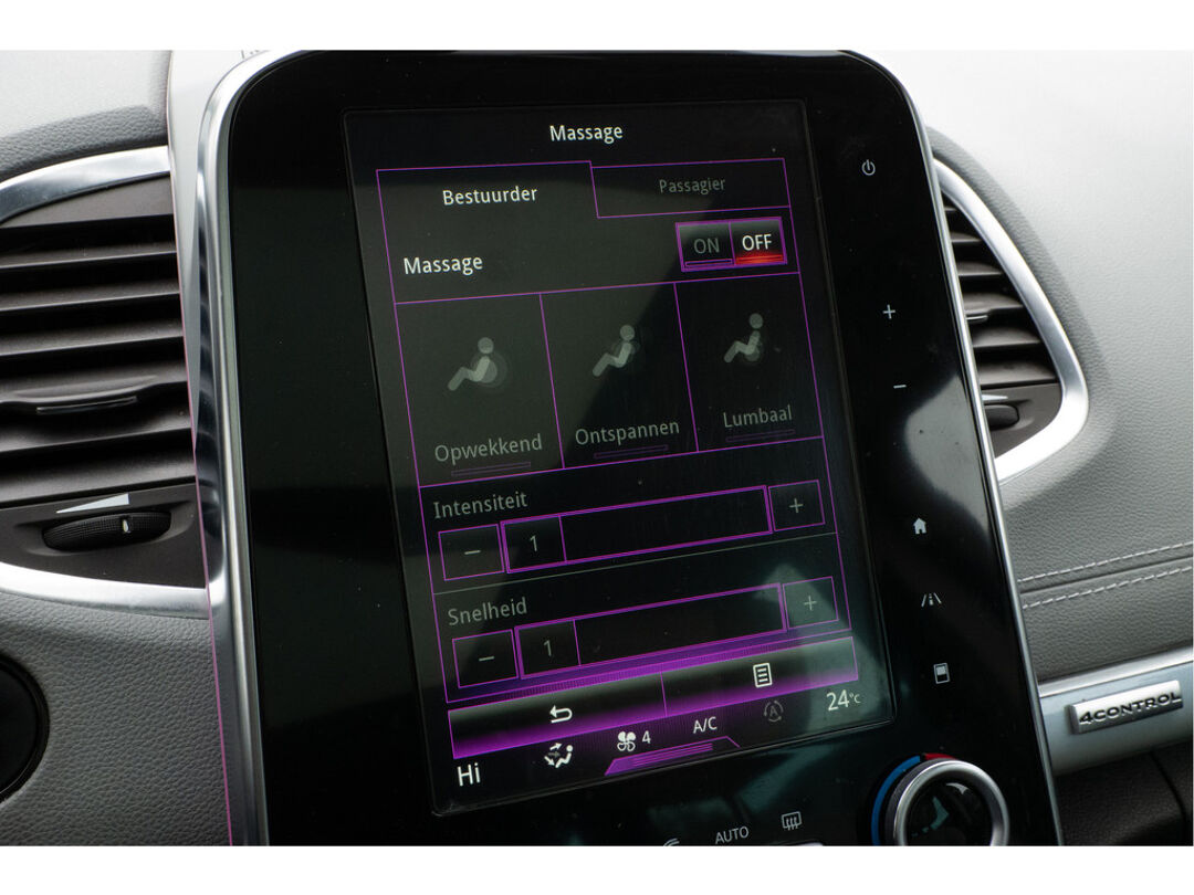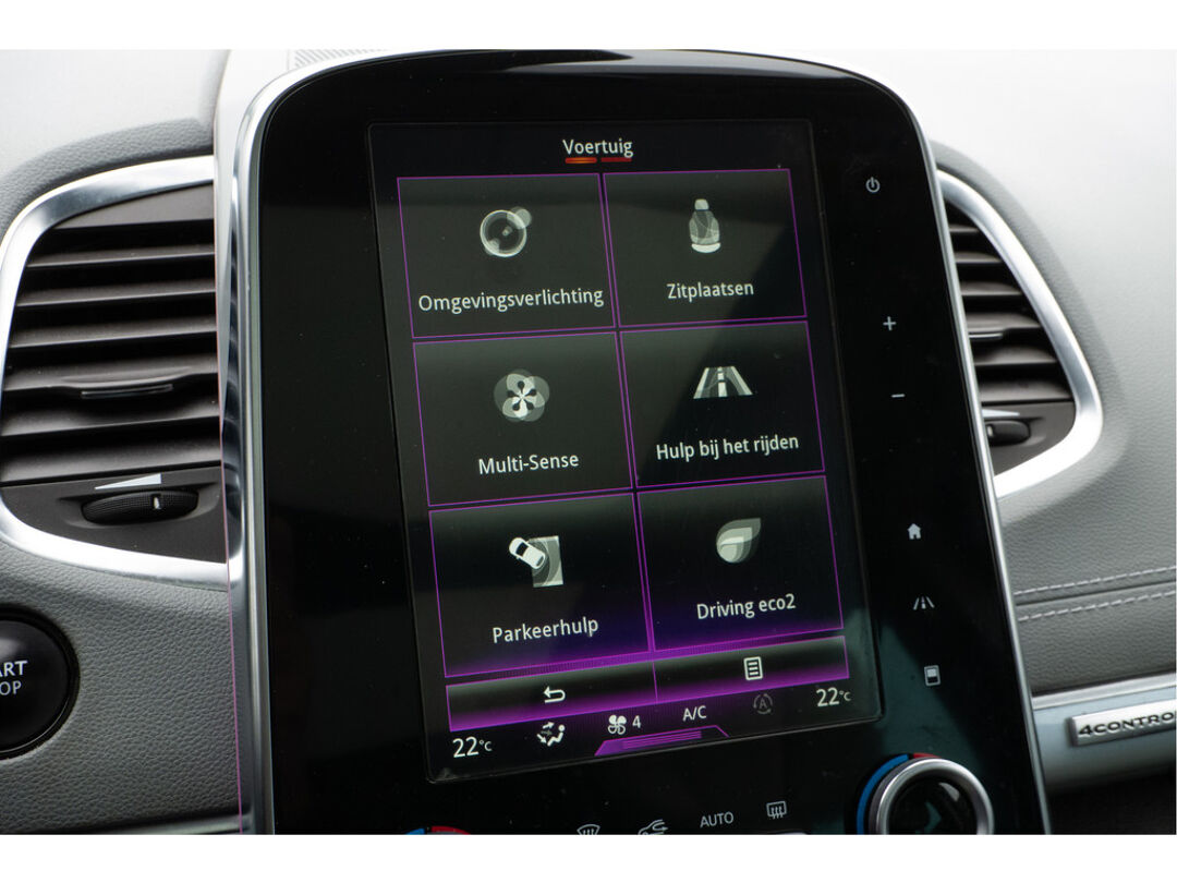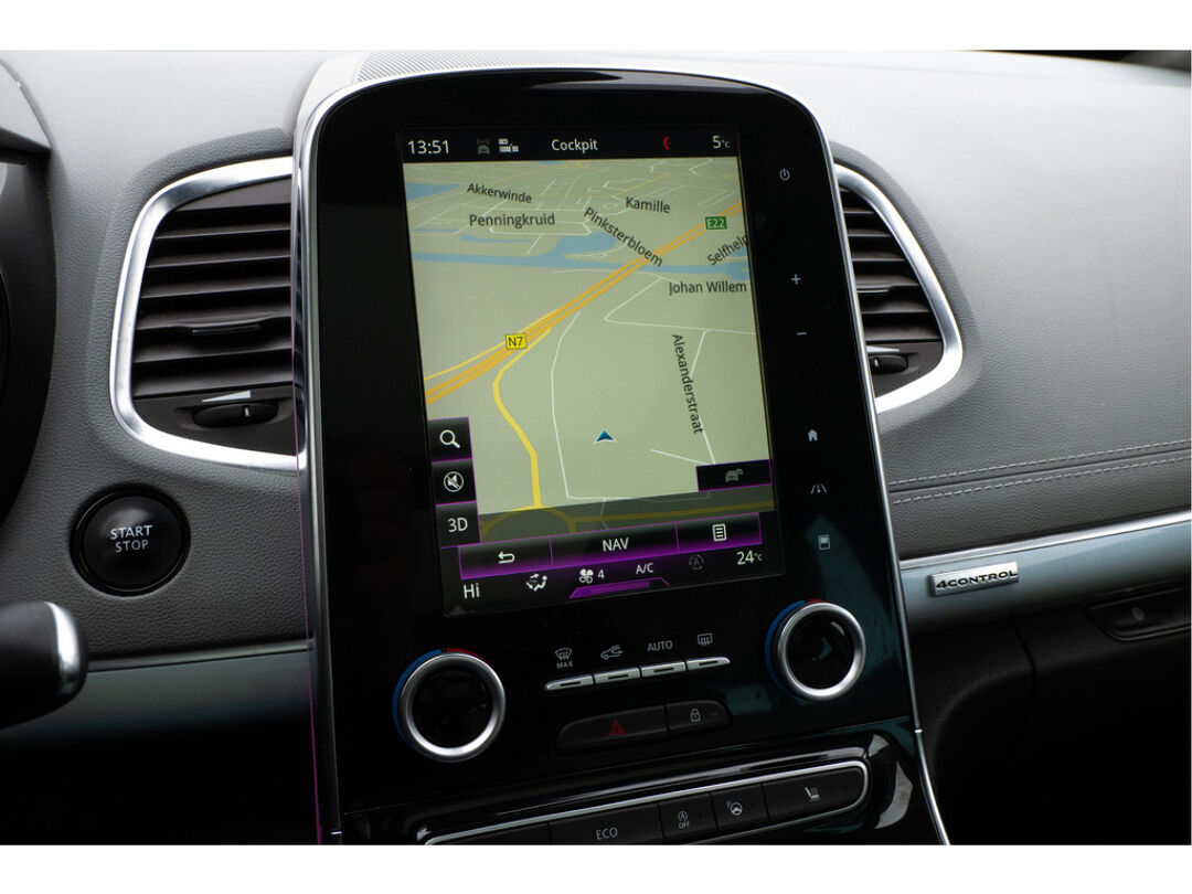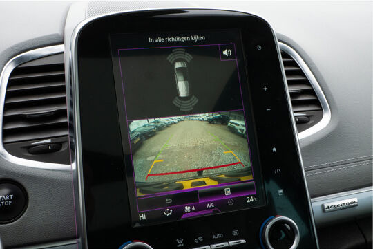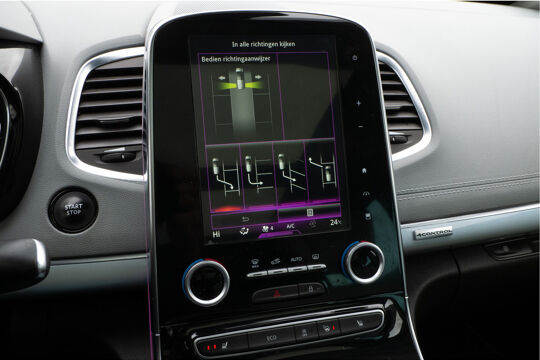 De achteruitrijcamera geeft u duidelijk zicht op de ruimte achter de auto. Adaptive cruise control is een comfortabele en veilige optie. Het systeem reguleert de snelheid en houdt automatisch afstand tot uw voorligger. De luidsprekers van het high performance audiosysteem omringen u met een uitgebalanceerd geluid. Het spreekt voor zich dat een auto als deze ook van automatische airconditioning is voorzien. Met keyless entry kunt u portieren ontgrendelen zonder dat u de sleutel in uw hand houdt. Deze Renault is voorzien van dashboard met spraakbediening, full map navigatiesysteem, DAB ontvangst, automatisch dimmende binnenspiegel en lederen stuur.