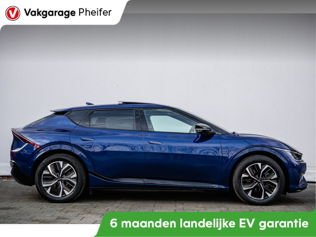 Het maakt niet uit of u binnen of buiten de stad rijdt. Het rijbereik van deze elektrische Kia EV6 biedt u alle vrijheid om te gaan en te staan waar u wilt. De voordelen van de elektromotor spreken voor zich: stil, schoon en snel! Een krachtige motor geeft deze auto zijn sportieve prestaties. Twaalf maanden per jaar een zomergevoel krijgt u van het elektrisch bediende glazen panorama dak. En 24 uur per dag het gemak van de elektrisch bedienbare achterklep. Behaaglijk onderweg zijn? Als bestuurder geniet u van de verwarmbare voorstoelen. Net als uw bijrijder! Voor en achter: iedereen dezelfde luxe. Vandaar de verwarmde achterbank. Dankzij de matrix LED-verlichting geven de koplampen ook in het donker daglicht. Tot de uitrusting behoren ook 19 inch lichtmetalen velgen, halflederen bekleding, warmtewerend glas, in delen neerklapbare achterbank, LED-achterlichten en verstelbare lendensteunen.