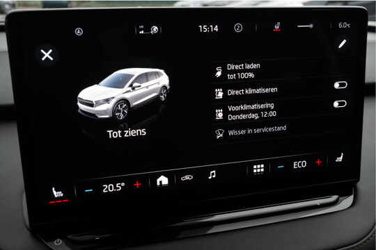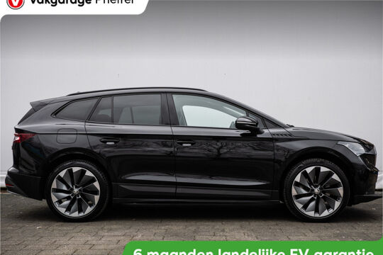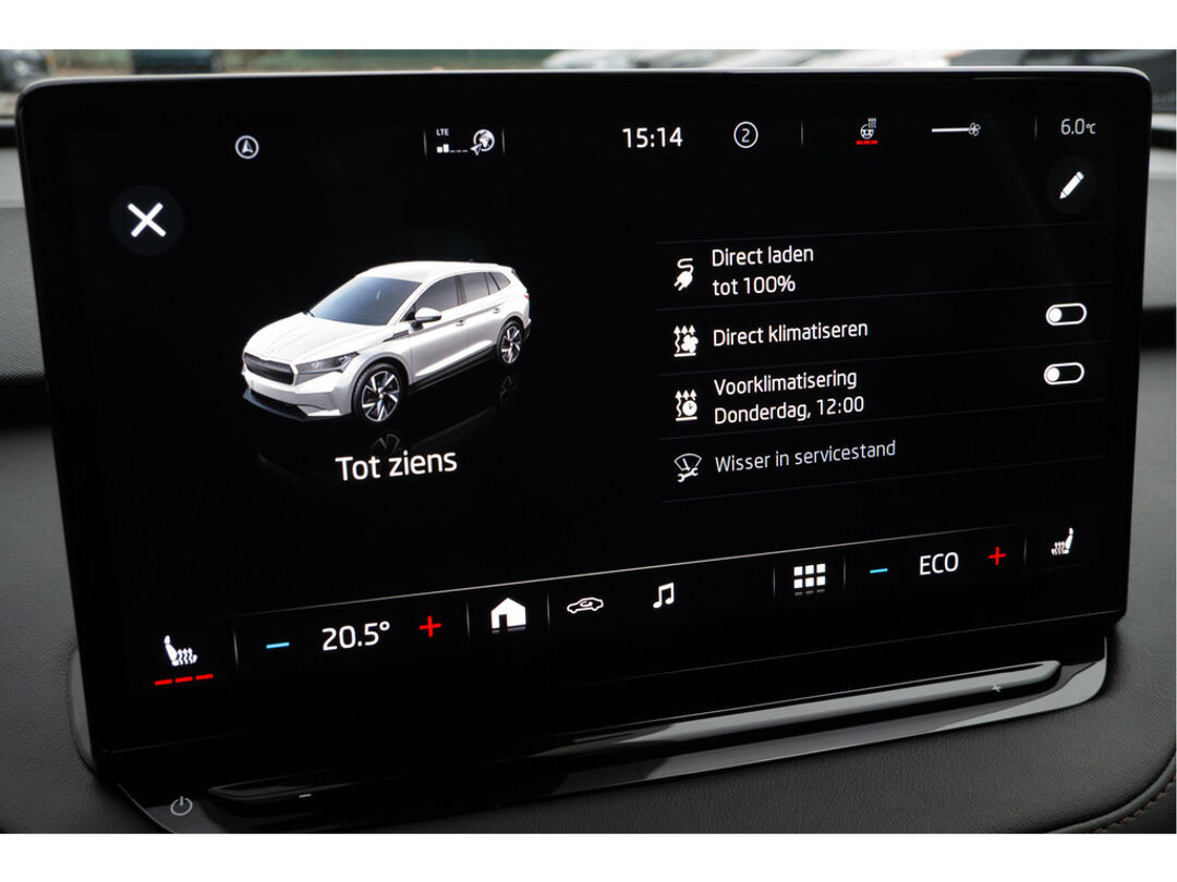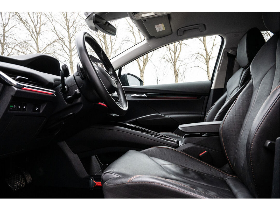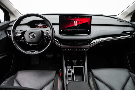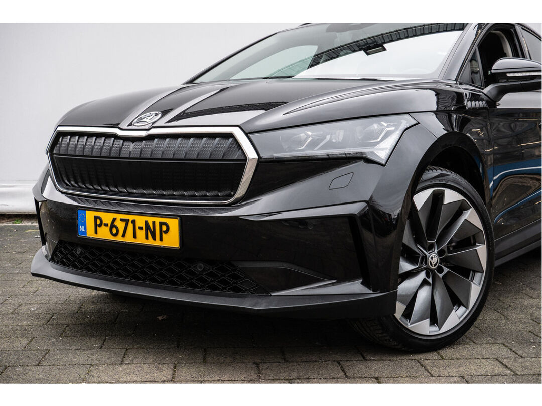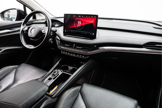 U voelt de onbeperkte kracht van elektrische aandrijving, elke keer als u op weg gaat met deze ŠKODA Enyaq iV. Nooit meer naar de pomp! De elektromotor opladen en rijden maar! Een krachtige motor geeft deze auto zijn sportieve prestaties. Een praktische extra is de elektrisch bedienbare achterklep die opent en sluit met een druk op de knop. Bij de uitrusting van deze auto horen onder meer 21 inch lichtmetalen velgen, LED koplampen, halflederen bekleding, in hoogte verstelbare passagiersstoel, in delen neerklapbare achterbank en LED-achterlichten.