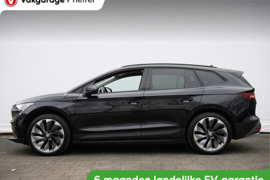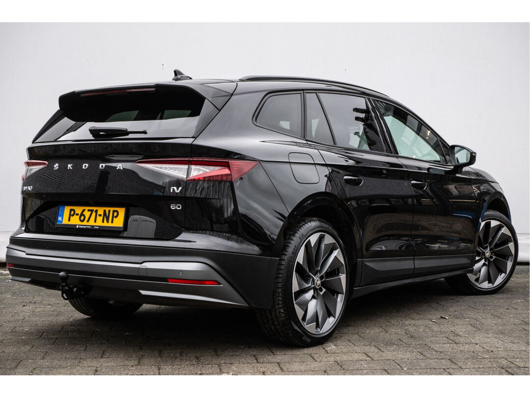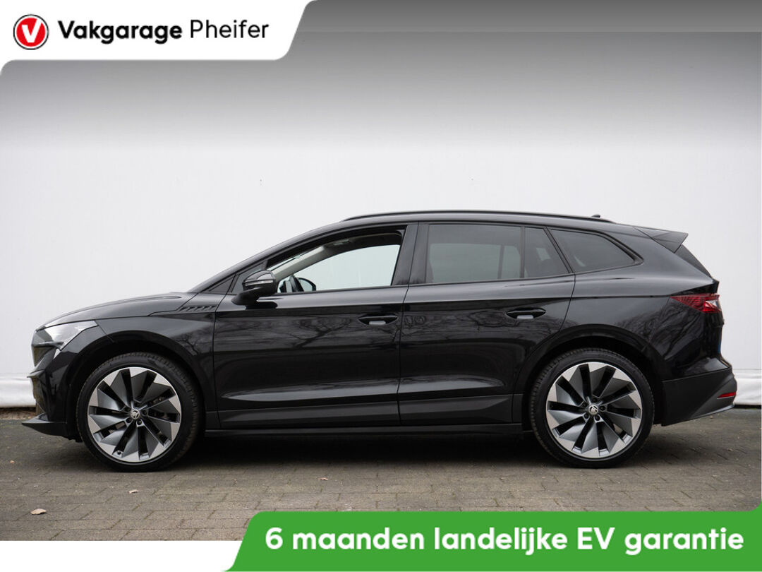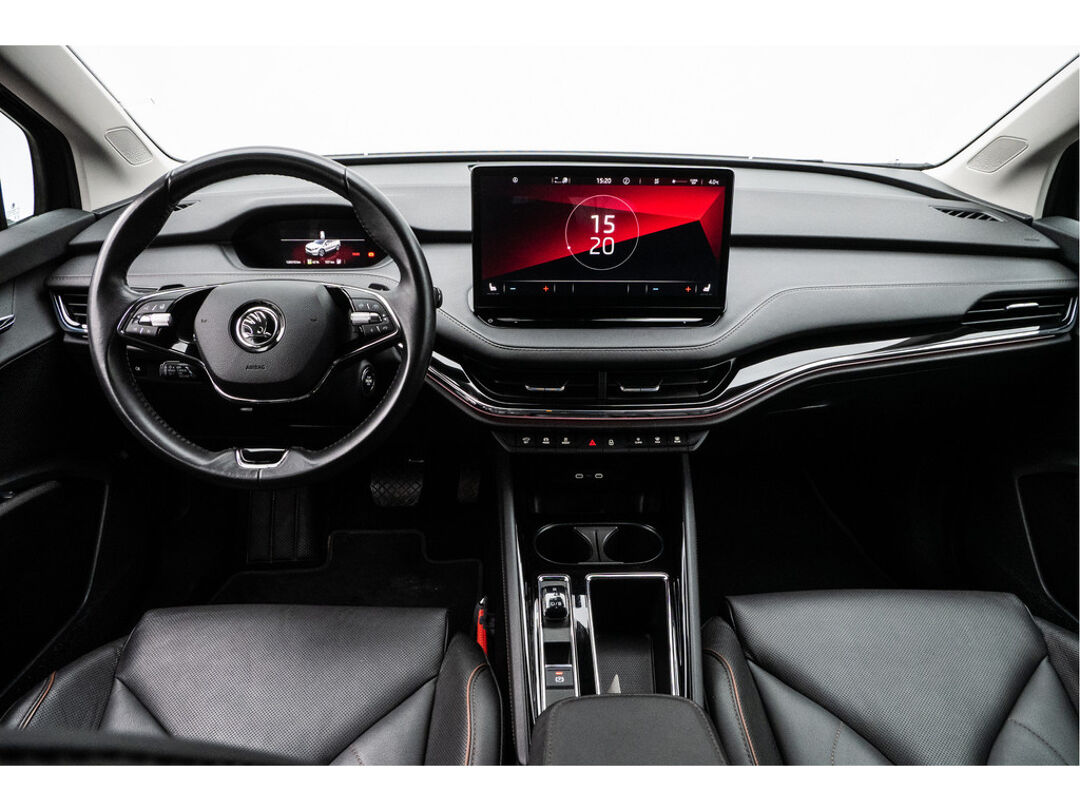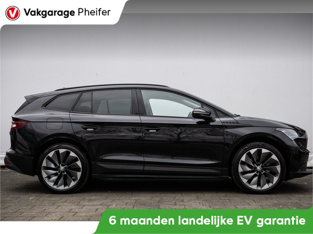 U voelt de onbeperkte kracht van elektrische aandrijving, elke keer als u op weg gaat met deze ŠKODA Enyaq iV. Nooit meer naar de pomp! De elektromotor opladen en rijden maar! Een krachtige motor geeft deze auto zijn sportieve prestaties. Een praktische extra is de elektrisch bedienbare achterklep die opent en sluit met een druk op de knop. Bij de uitrusting van deze auto horen onder meer 21 inch lichtmetalen velgen, LED koplampen, halflederen bekleding, in hoogte verstelbare passagiersstoel, in delen neerklapbare achterbank en LED-achterlichten.