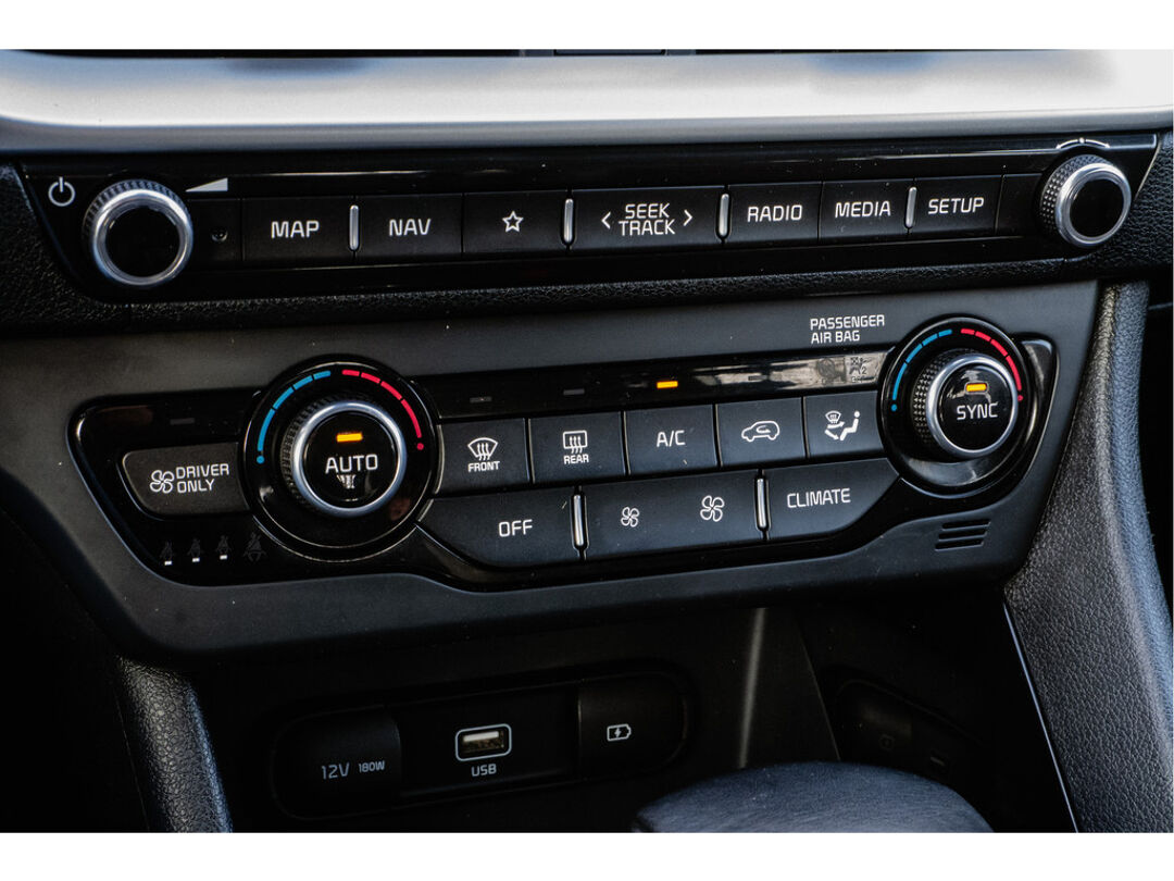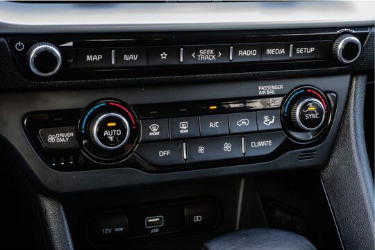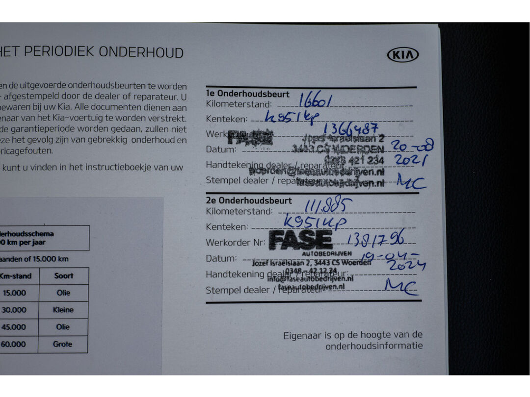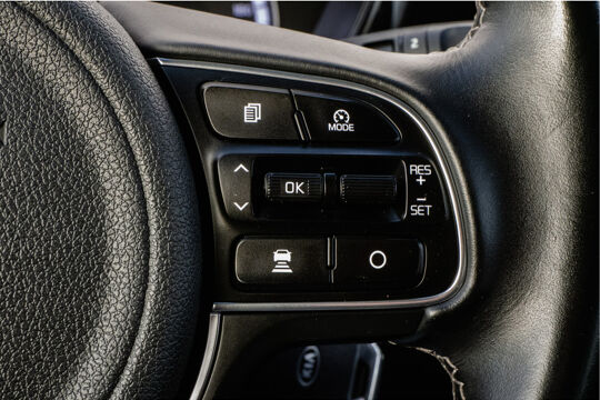 Ook achter de auto geen verrassingen bij het inparkeren. Daarvoor zorgt de achteruitrijcamera. Adaptive cruise control houdt de ingestelde snelheid vast en houdt afstand tot het voertuig voor u. Een goede veiligheidsvoorziening is de stuurbediening voor belangrijke functies. De auto is natuurlijk voorzien van een full map navigatiesysteem en het audiosysteem biedt glasheldere geluidskwaliteit dankzij DAB-ontvangst. De automatische airconditioning zorgt onder alle omstandigheden voor een prettige temperatuur. De auto neemt u werk uit handen doordat hij zelf veel in de gaten houdt. Een regensensor en een automatisch inschakelbare verlichting nemen waar wanneer de ruitenwissers en het licht aan moeten. Ook is de Kia uitgerust met: schakelpaddles aan het stuur, automatisch dimmende binnenspiegel, centrale deurvergrendeling met afstandsbediening, bagage afdekhoes en lederen versnellingspook.