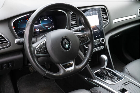 Het digitale dashboard is een perfecte bijrijder. Alles benodigde informatie is permanent zichtbaar of opvraagbaar. De achteruitrijcamera maakt inparkeren gemakkelijker dan ooit. Het audiosysteem met DAB-ontvangst en het full map navigatiesysteem bedient u veilig met knoppen op het stuur. De automatische airconditioning zorgt onder alle omstandigheden voor een prettige temperatuur. Het hoort bij een intelligente auto als deze dat hij zelf in staat is om zijn omgeving in de gaten te houden. Dat doet deze Renault met een automatisch inschakelbare verlichting en een regensensor. Ook is de Renault uitgerust met: cruise control, keyless entry, automatisch dimmende binnenspiegel, lederen stuur, boordcomputer en lederen versnellingspook.