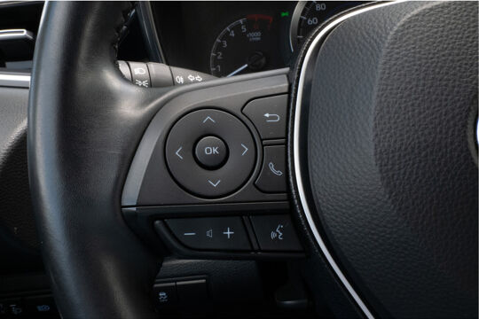 Wat een gemak, die achteruitrijcamera. Alles in beeld zonder capriolen. Adaptive cruise control is veilig en comfortabel. De snelheidsregelaar houdt automatisch afstand tot het voertuig dat voor u rijdt. De meest gebruikte voertuigfuncties laten zich met behulp van uw stem bedienen. Handig en veilig: Connected Services. Alle vitale functies en data van de auto checkt u via de app op uw smartphone. Omdat u nu eenmaal niet overal ogen heeft, is deze Toyota Corolla Touring Sports voorzien van een achteropkomend verkeer waarschuwing die registreert wanneer de afstand tot uw achterligger te krap is. Natuurlijk behoren automatische airconditioning, DAB ontvangst, buitentemperatuurmeter, centrale deurvergrendeling met afstandsbediening en verstelbaar stuur ook tot de uitrusting van deze complete auto.
