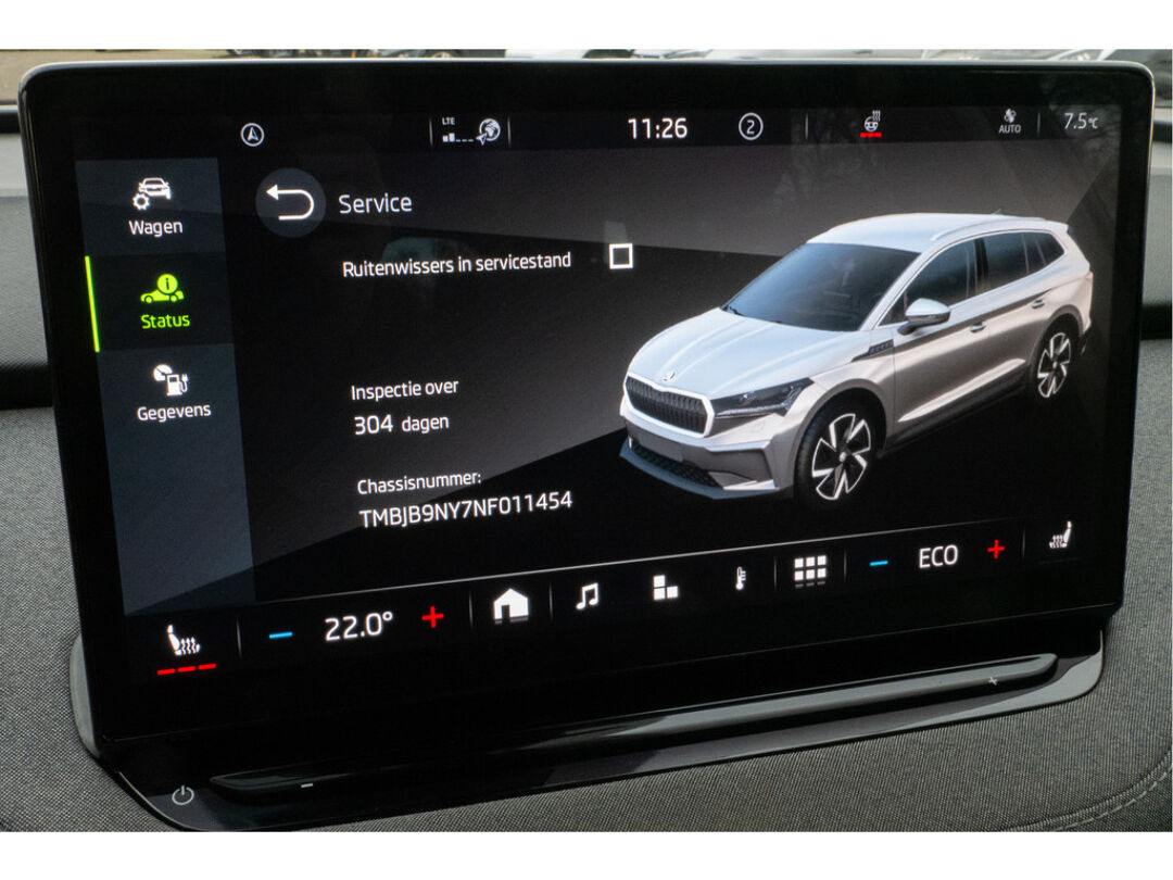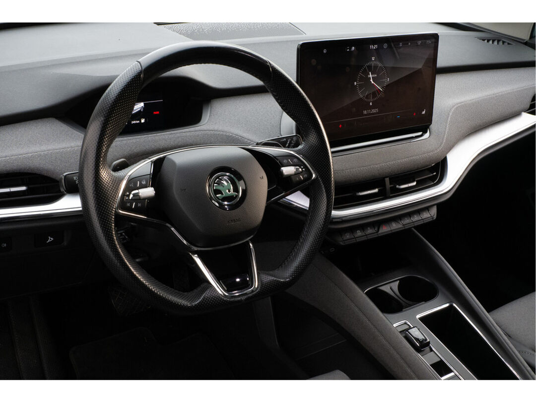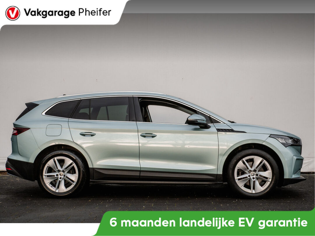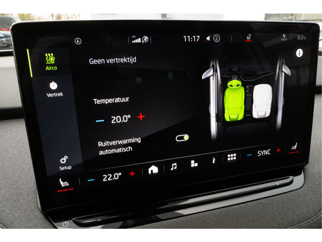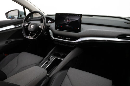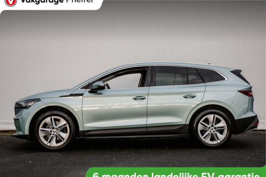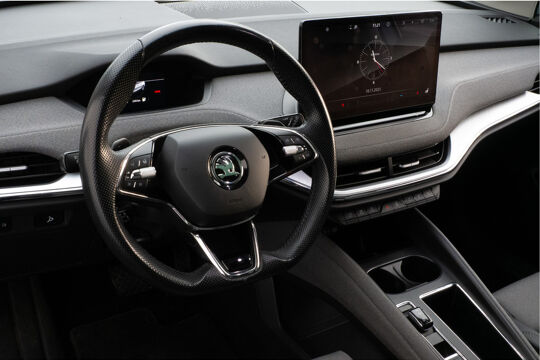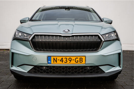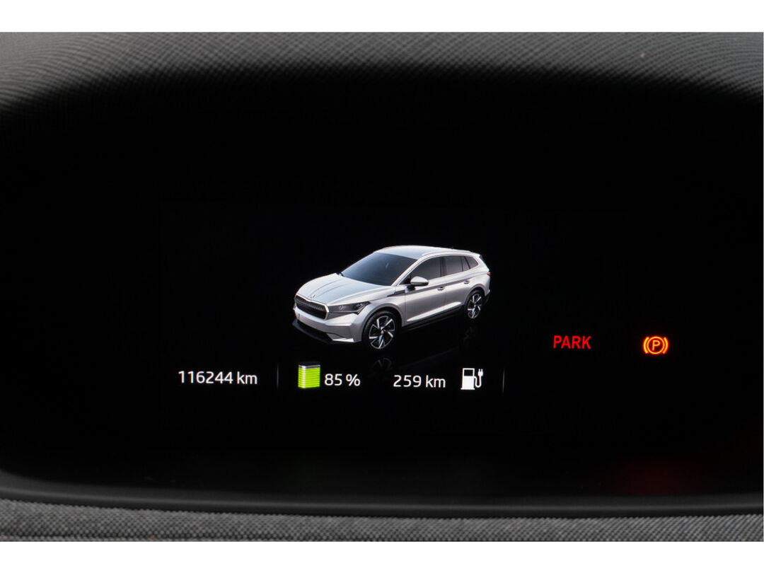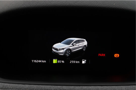 ŠKODA heeft een uitstekende reputatie opgebouwd als het gaat om betrouwbare elektrische auto's. Kiest u voor deze Enyaq iV, dan kiest u voor degelijke techniek van topklasse. De modernste techniek is toegepast om u in alle rust en stilte van de rit te laten genieten. Daarbij zult u zien dat de tijd om de accu's op te laden enorm meevalt, en dankzij de flinke actieradius hoeft u dat ook niet zo vaak te doen. Een krachtige motor geeft deze auto zijn sportieve prestaties. Regen, wind, hagel, sneeuw? Als het buiten guur is, doet de stoelverwarming z'n weldadige werk! Het glazen panoramadak geeft ook doordeweeks een vakantiegevoel. Wat een licht en zicht! Bij de uitrusting van deze ŠKODA horen onder meer 19 inch lichtmetalen velgen, LED koplampen, halflederen bekleding, in delen neerklapbare achterbank, LED-achterlichten en verstelbare lendensteunen.