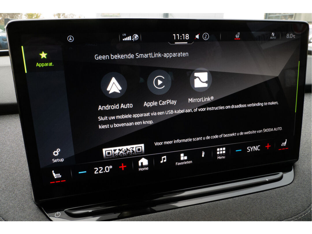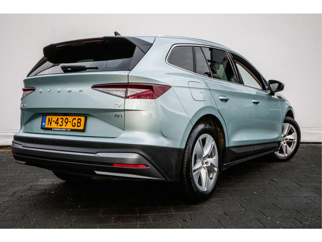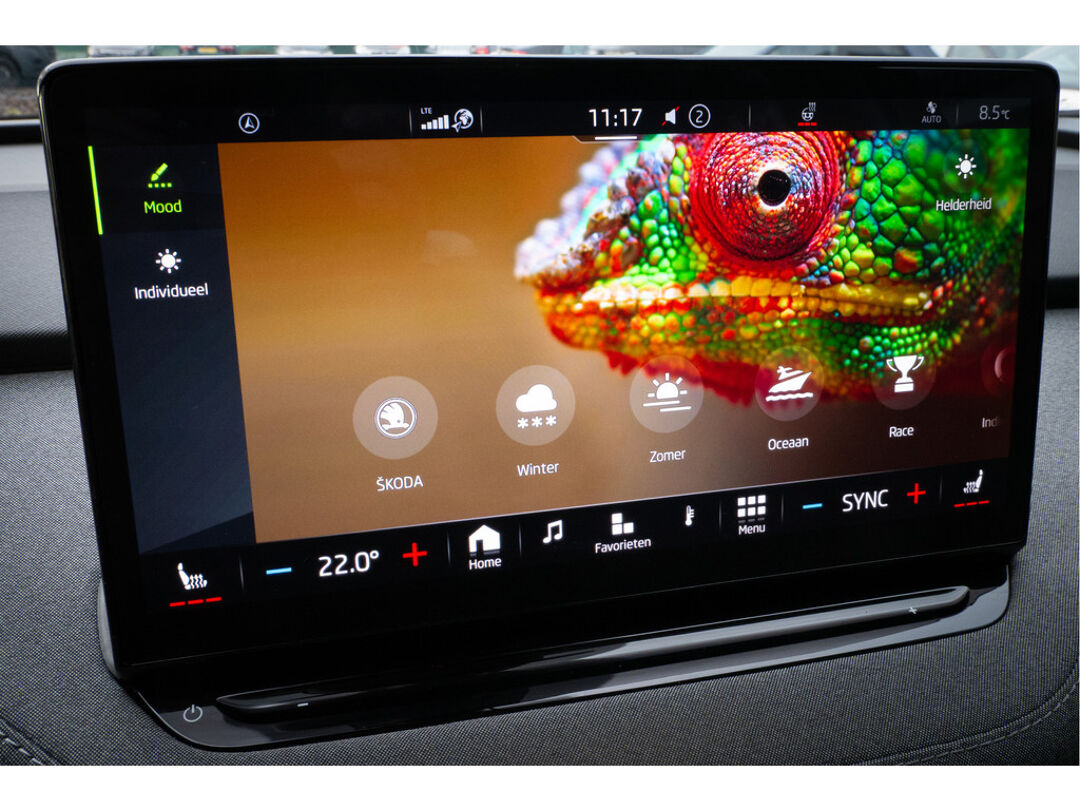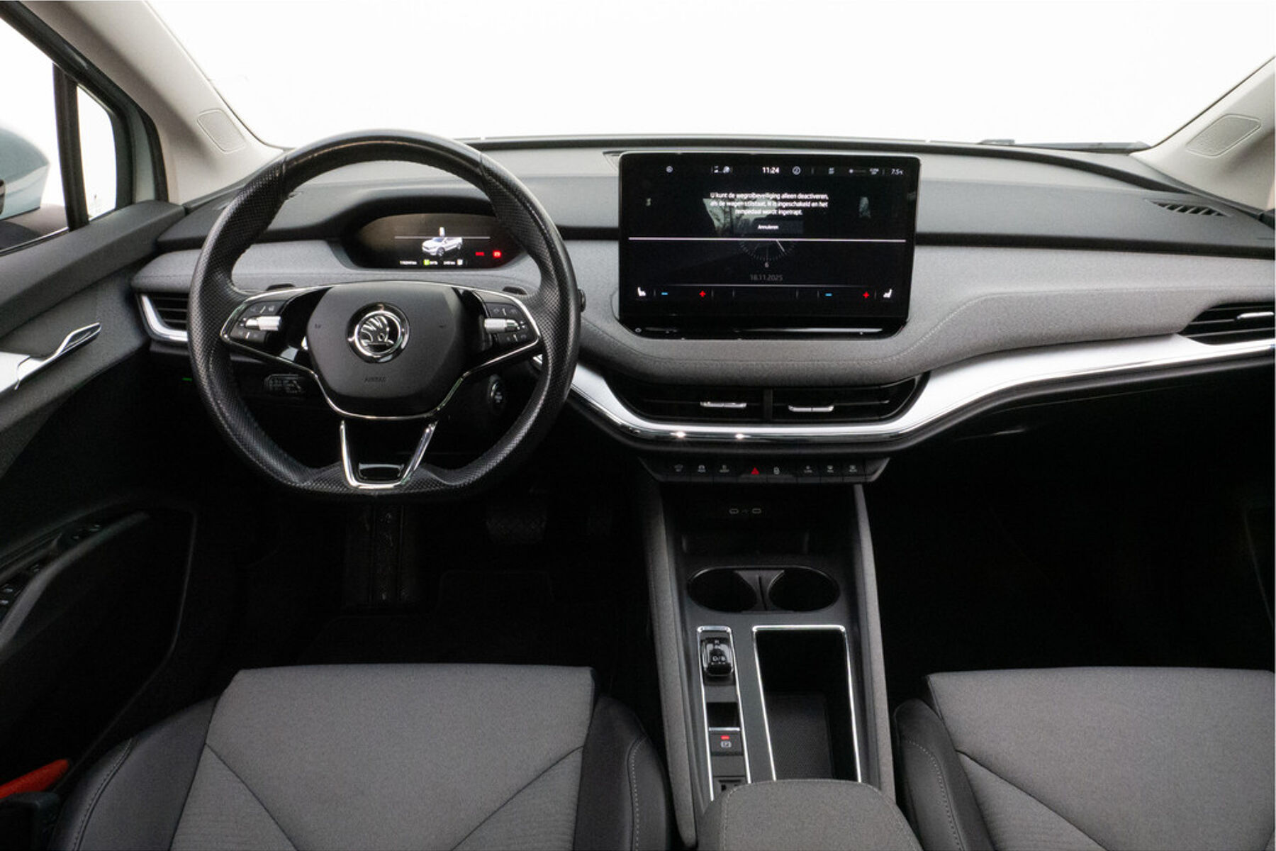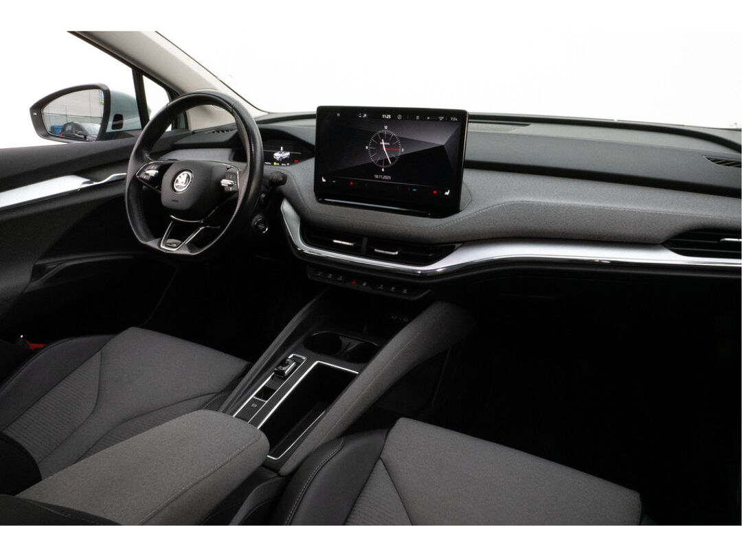 ŠKODA heeft een uitstekende reputatie opgebouwd als het gaat om betrouwbare elektrische auto's. Kiest u voor deze Enyaq iV, dan kiest u voor degelijke techniek van topklasse. De modernste techniek is toegepast om u in alle rust en stilte van de rit te laten genieten. Daarbij zult u zien dat de tijd om de accu's op te laden enorm meevalt, en dankzij de flinke actieradius hoeft u dat ook niet zo vaak te doen. Een krachtige motor geeft deze auto zijn sportieve prestaties. Regen, wind, hagel, sneeuw? Als het buiten guur is, doet de stoelverwarming z'n weldadige werk! Het glazen panoramadak geeft ook doordeweeks een vakantiegevoel. Wat een licht en zicht! Bij de uitrusting van deze ŠKODA horen onder meer 19 inch lichtmetalen velgen, LED koplampen, halflederen bekleding, in delen neerklapbare achterbank, LED-achterlichten en verstelbare lendensteunen.