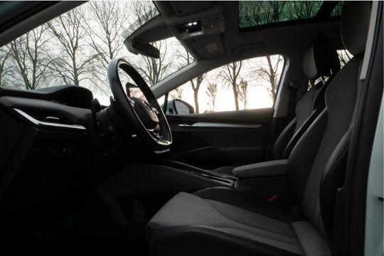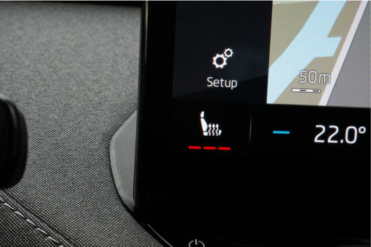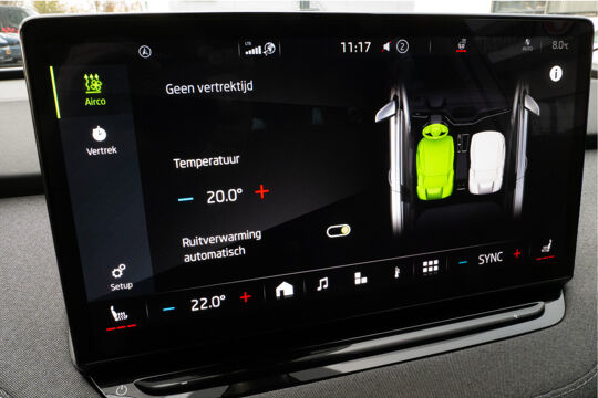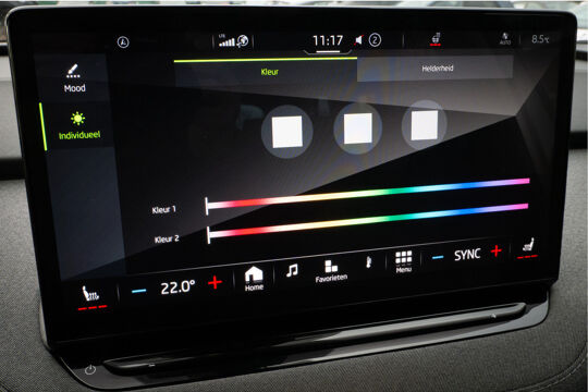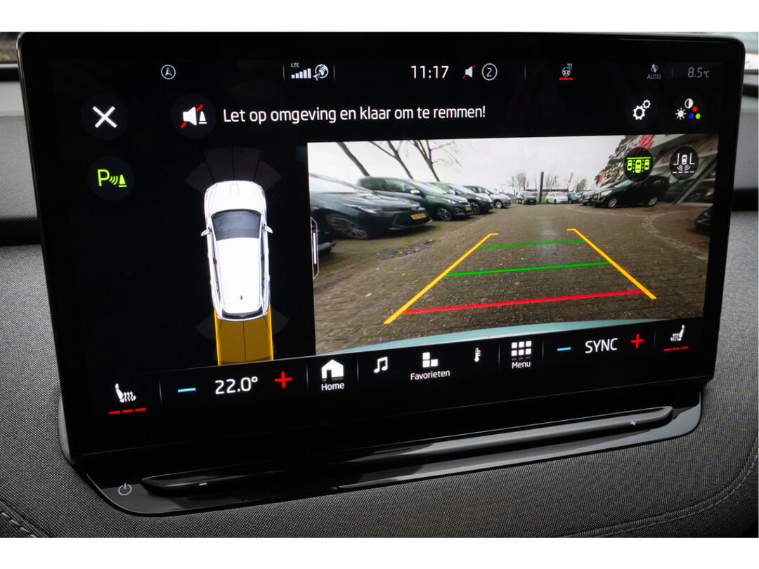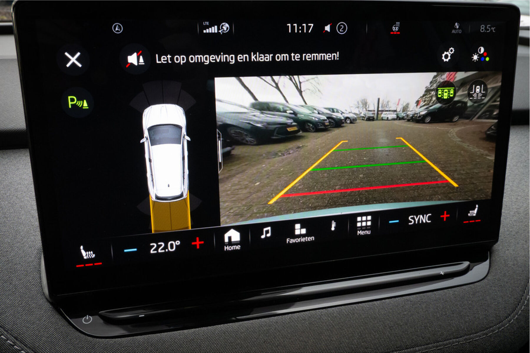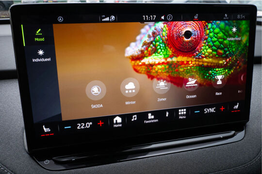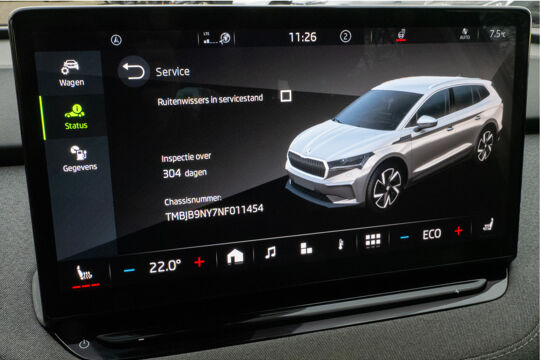 De ŠKODA Enyaq iV is ook voorzien van ADAS. Deze Advanced Driver Assistence Systems fungeren als extra ogen en oren: ze houden voor u de weg in de gaten en grijpen in wanneer dat nodig is. Het Lane-keeping systeem registreert permanent of u binnen de lijnen van de rijstrook blijft; dwaalt u onbedoeld af, dan waarschuwt het systeem en corrigeert de koers. De forward collision warning reduceert het gevaar van een botsing met een voorligger significant. In deze ŠKODA vinden we verder een dodehoekdetectie, autonoom remsysteem en bandenspanningcontrolesysteem.