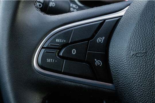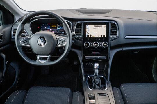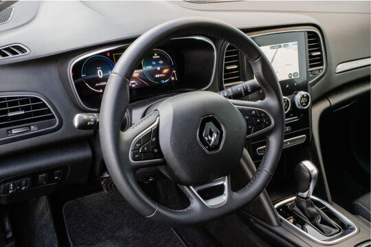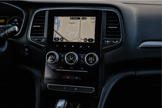 U leest alle belangrijke functies helder af dankzij het digitale dashboard. Kinderfietsje niet gezien bij het inparkeren? Dat gebeurt u nooit meer. Daar zorgt de achteruitrijcamera wel voor! U bedient het full map navigatiesysteem en het audiosysteem met DAB-radio via knoppen op het stuur. Zo kunt u steeds uw aandacht gericht houden op de weg. In een auto als deze kunt u niet zonder automatische airconditioning, zodat de temperatuur altijd goed is. Het drukke verkeer eist onderweg al uw aandacht op. Daarom is het goed dat deze Renault is voorzien van diverse systemen die u assisteren tijdens de rit. Een automatisch inschakelbare verlichting neemt het waar als het donker wordt of gaat schemeren, en schakelt dan automatisch de verlichting in. Op dezelfde manier "ziet" de regensensor de eerste spatjes regen en schakelt dan de ruitenwissers in, en als het harder gaat regenen zet hij de ruitenwissers ook in een snellere stand. U bent in deze Renault ook voorzien van cruise control, centrale deurvergrendeling met afstandsbediening, boordcomputer en verstelbaar stuur.
