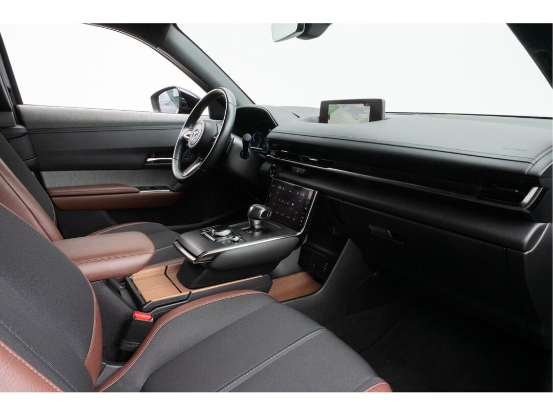 In de Mazda MX-30 heeft uw veiligheid en die van uw omgeving prioriteit. In het instrumentarium laat de verkeersborddetectie de actuele verkeersborden zien. Het Lane-keeping systeem registreert permanent of u binnen de lijnen van de rijstrook blijft; dwaalt u onbedoeld af, dan waarschuwt het systeem en corrigeert de koers. Hoe goed u ook oplet in het verkeer, de dode hoek blijft een risico. Gelukkig is deze Mazda MX-30 voorzien van actieve dodehoekdetectie. De veiligheid van deze auto wordt verder verhoogd door head-up display, forward collision warning system, hill hold functie, brake assist, vermoeidheidsherkenning en bandenspanningcontrolesysteem.