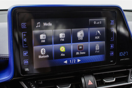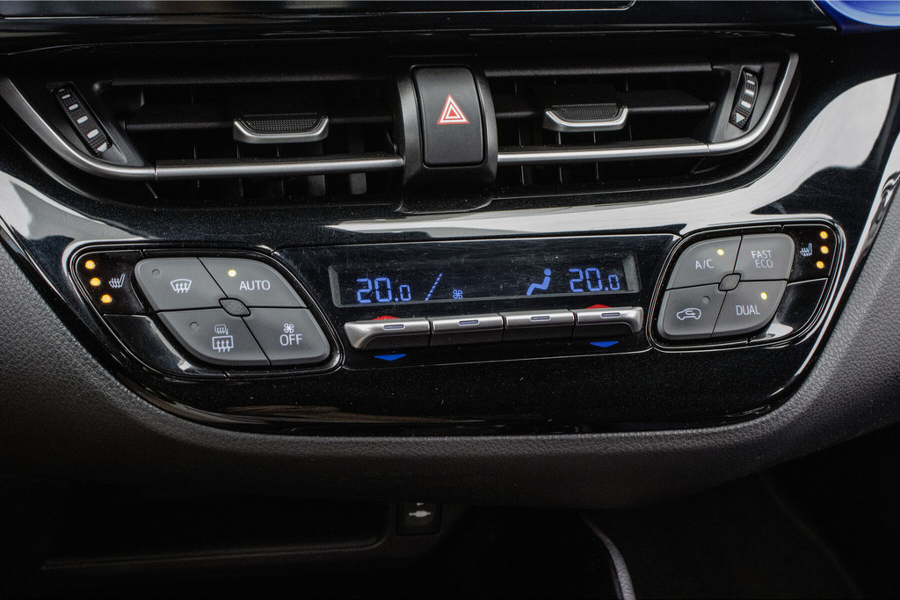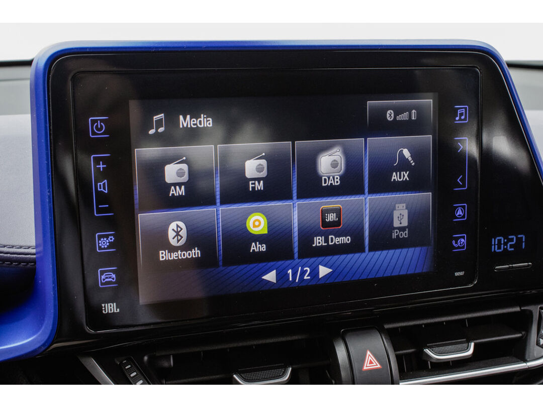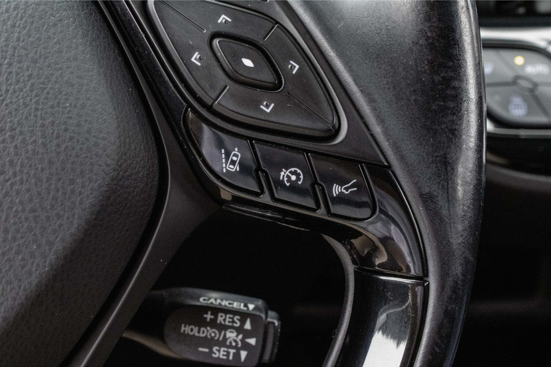 De nieuwste veiligheidssystemen komen in deze Toyota C-HR samen. In het instrumentarium ziet u tijdens de rit ook de belangrijkste verkeersborden aangegeven, die de auto automatisch voor u leest. Het Lane-keeping systeem zorgt dat u mooi binnen de lijntjes blijft. Ongemerkt buiten de rijstrook komen is er niet meer bij. Een veilige extra is de Brake Assist. Uit onderzoek blijkt dat bestuurders bij een noodstop niet het maximum uit hun remkracht halen. Met deze automatische remondersteuning wel. De auto is ook uitgerust met dodehoekdetectie, hill hold functie en bandenspanningcontrolesysteem.