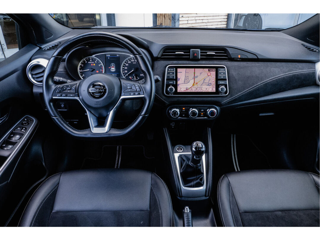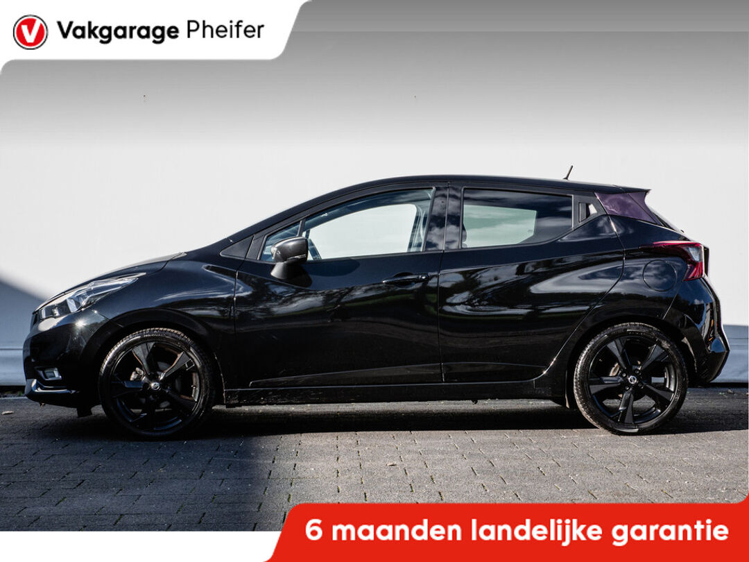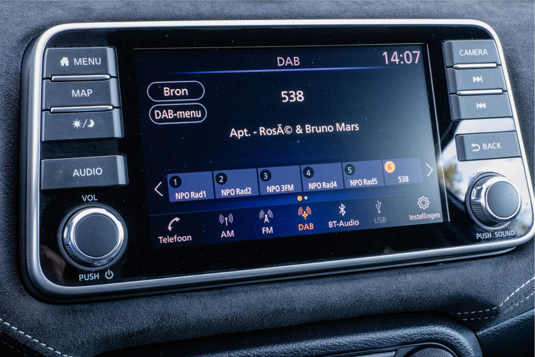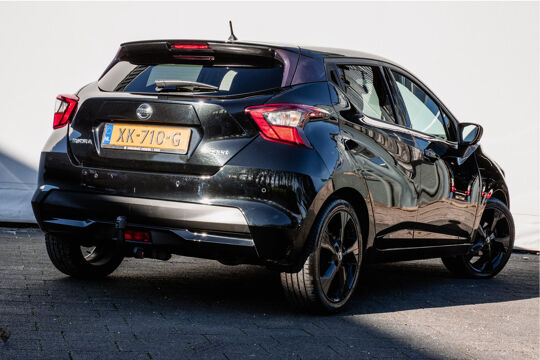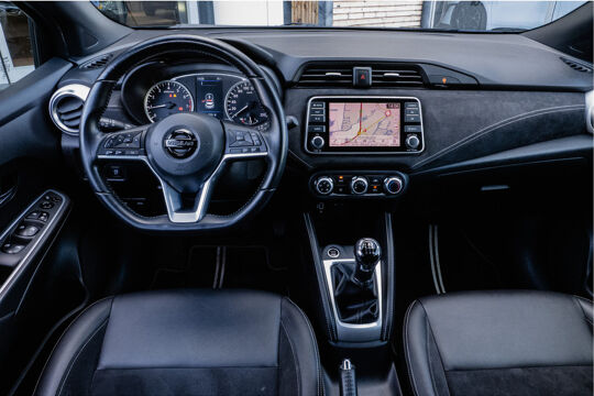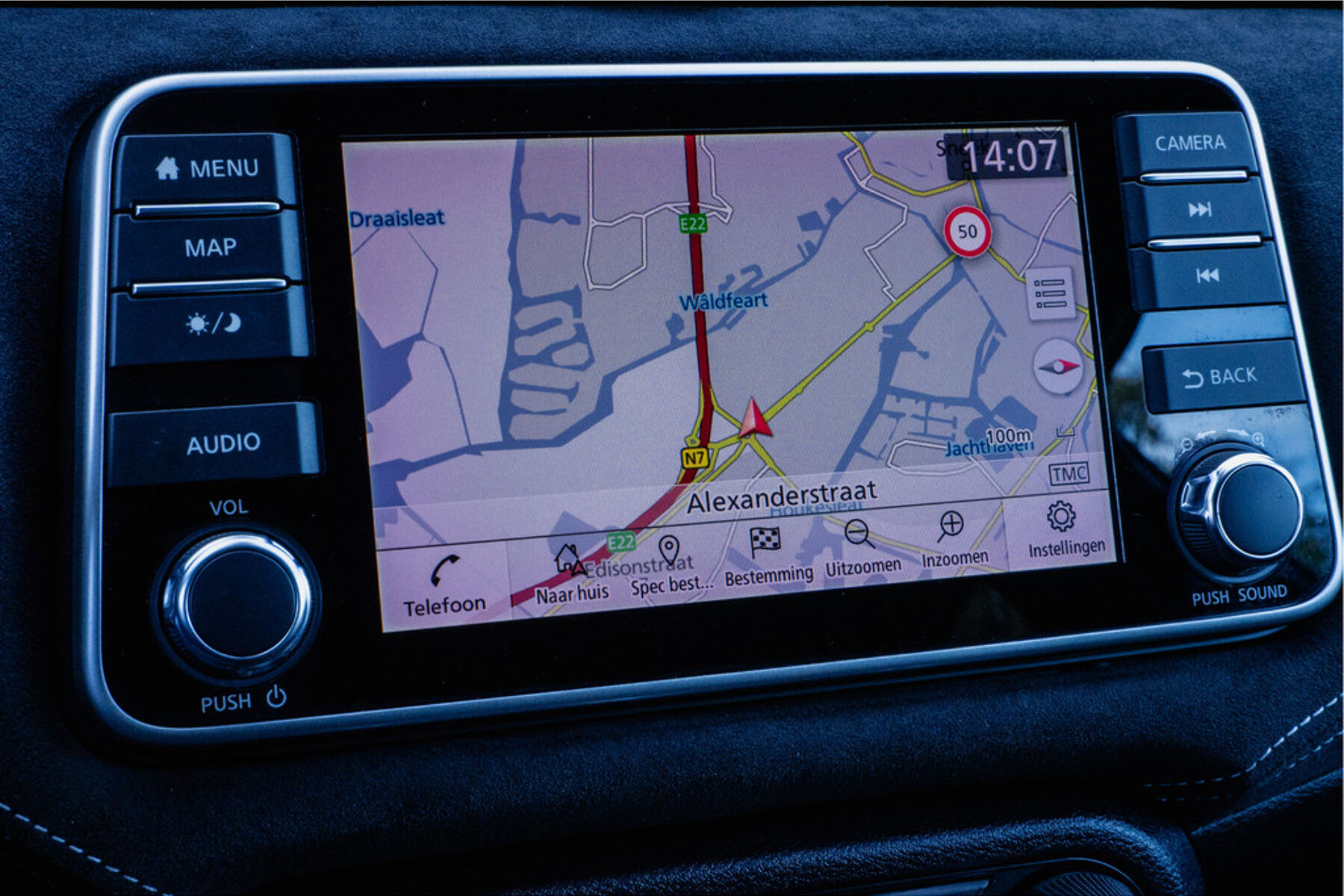 Kom maar, kom maar, kom maar... ho! Prettig hoor, zo'n achteruitrijcamera. U kunt uw handen aan het stuur houden en uw ogen op de weg. Want het audiosysteem, met DAB-ontvangst, en het full map navigatiesysteem bedient u vanaf het stuurwiel. Ook over uw schouder ziet u onderweg niet alles wat er aan de achterzijde gebeurt. Daarom heeft deze Nissan Micra een achteropkomend verkeer waarschuwing. De aanwezige cruise control scheelt lekker in brandstofkosten. En ook bij de flitspaal. De sensor van de keyless entry herkent u op korte afstand en ontgrendelt de portieren automatisch. Ook airconditioning, automatisch dimmende binnenspiegel, boordcomputer en verstelbaar stuur zijn aan boord.