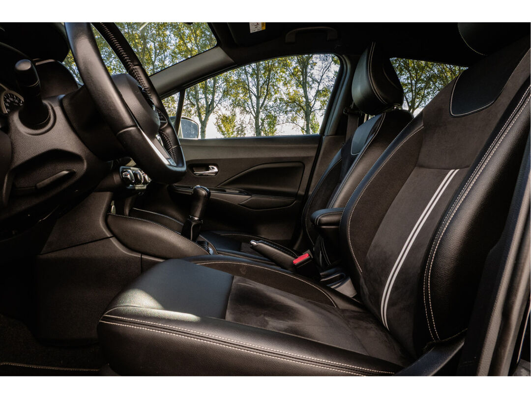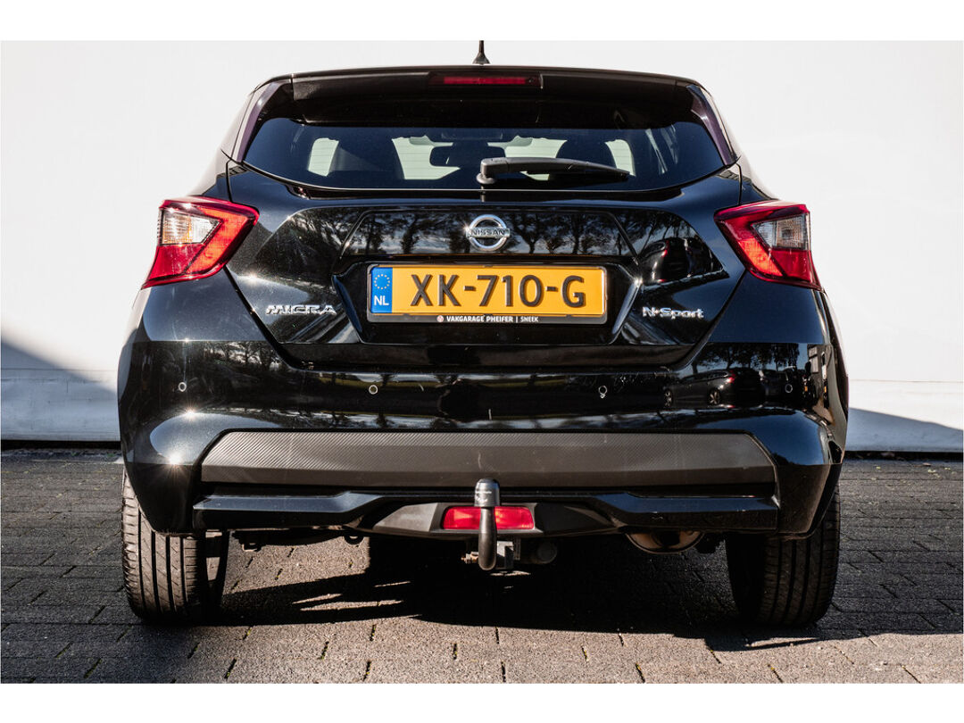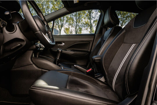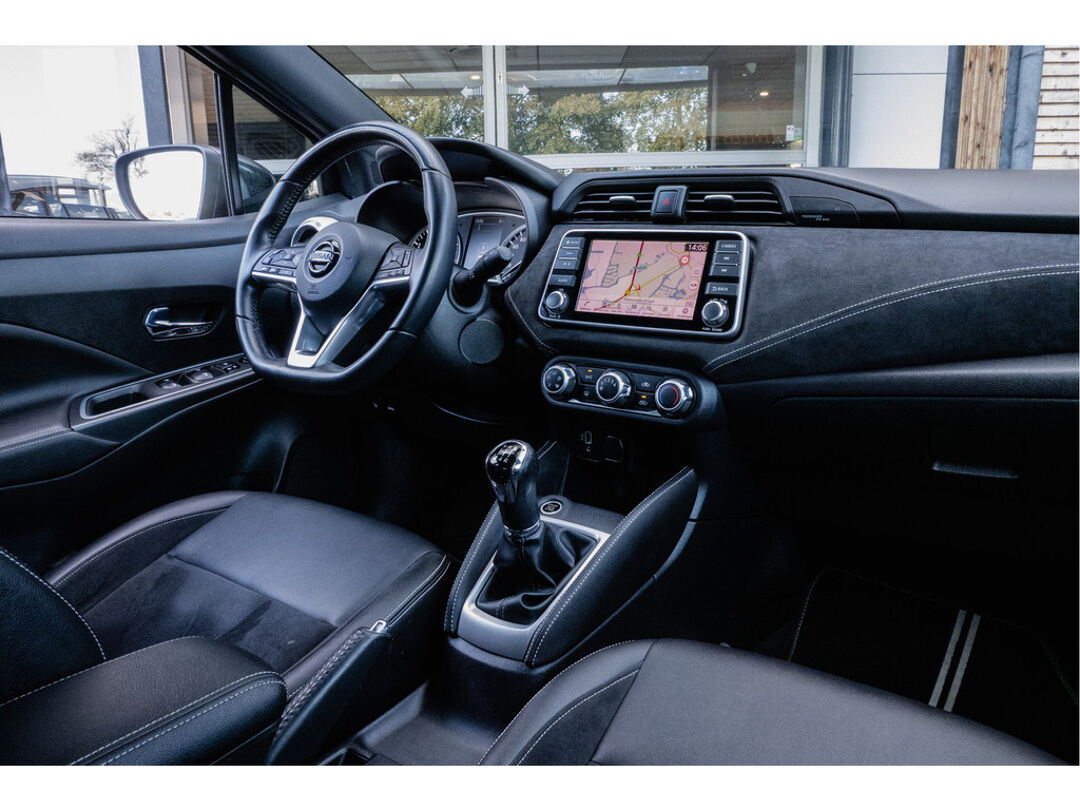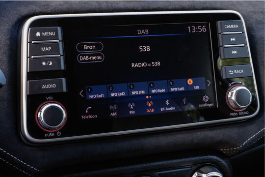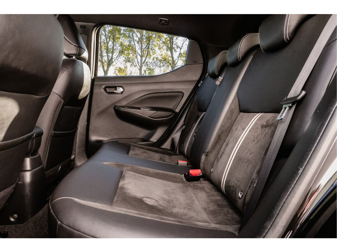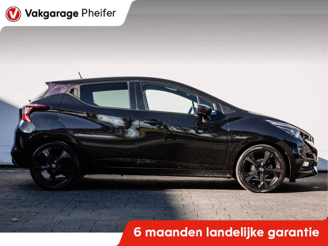 Kom maar, kom maar, kom maar... ho! Prettig hoor, zo'n achteruitrijcamera. U kunt uw handen aan het stuur houden en uw ogen op de weg. Want het audiosysteem, met DAB-ontvangst, en het full map navigatiesysteem bedient u vanaf het stuurwiel. Ook over uw schouder ziet u onderweg niet alles wat er aan de achterzijde gebeurt. Daarom heeft deze Nissan Micra een achteropkomend verkeer waarschuwing. De aanwezige cruise control scheelt lekker in brandstofkosten. En ook bij de flitspaal. De sensor van de keyless entry herkent u op korte afstand en ontgrendelt de portieren automatisch. Ook airconditioning, automatisch dimmende binnenspiegel, boordcomputer en verstelbaar stuur zijn aan boord.