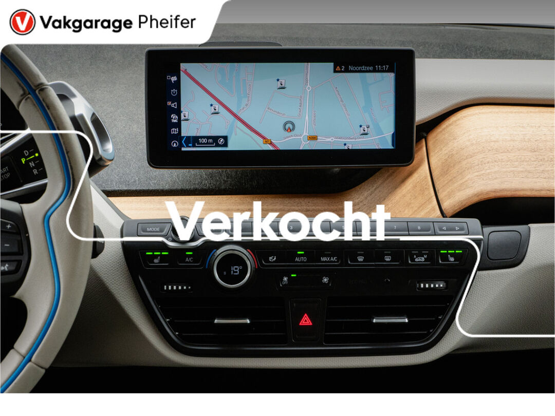 Met het digitale dashboard kunt u de cockpit-interface naar uw voorkeur instellen. Deze auto gaat met u in gesprek. Hij vertelt u dankzij remote services alles over de status van diverse onderdelen en laat zich desgevraagd ook activeren. Gewoon via uw smartphone. Als belangrijke extra geldt zonder twijfel het high performance audiosysteem met topkwaliteit geluidsweergave. Aan boord van deze BMW i3 is een achteropkomend verkeer waarschuwing voor extra veiligheid. Nooit meer te warm of te koud. De automatische airconditioning zorgt altijd voor de temperatuur die u kiest. En dan is deze auto ook nog eens voorzien van full map navigatiesysteem, DAB ontvangst, parkeersensoren achter, cruise control, automatisch dimmende binnenspiegel en lederen stuur.