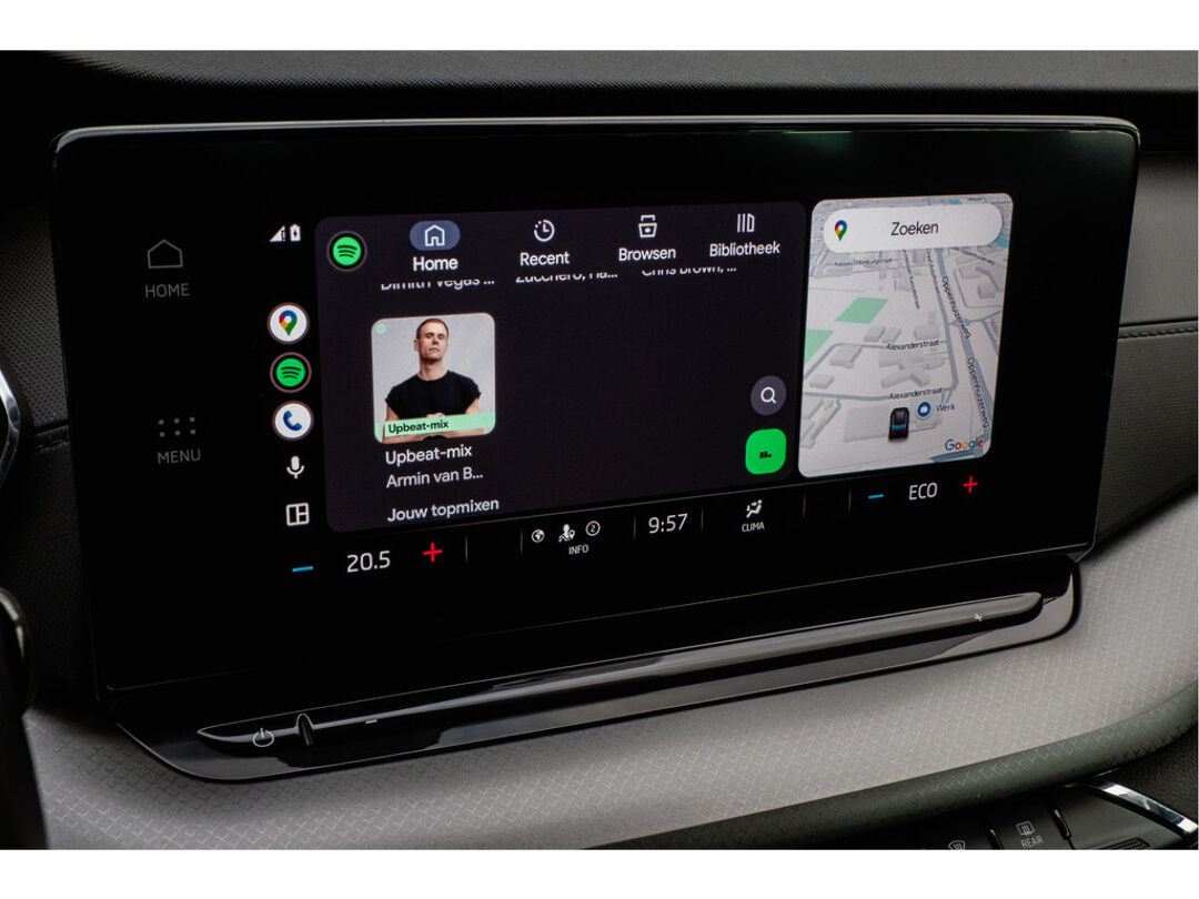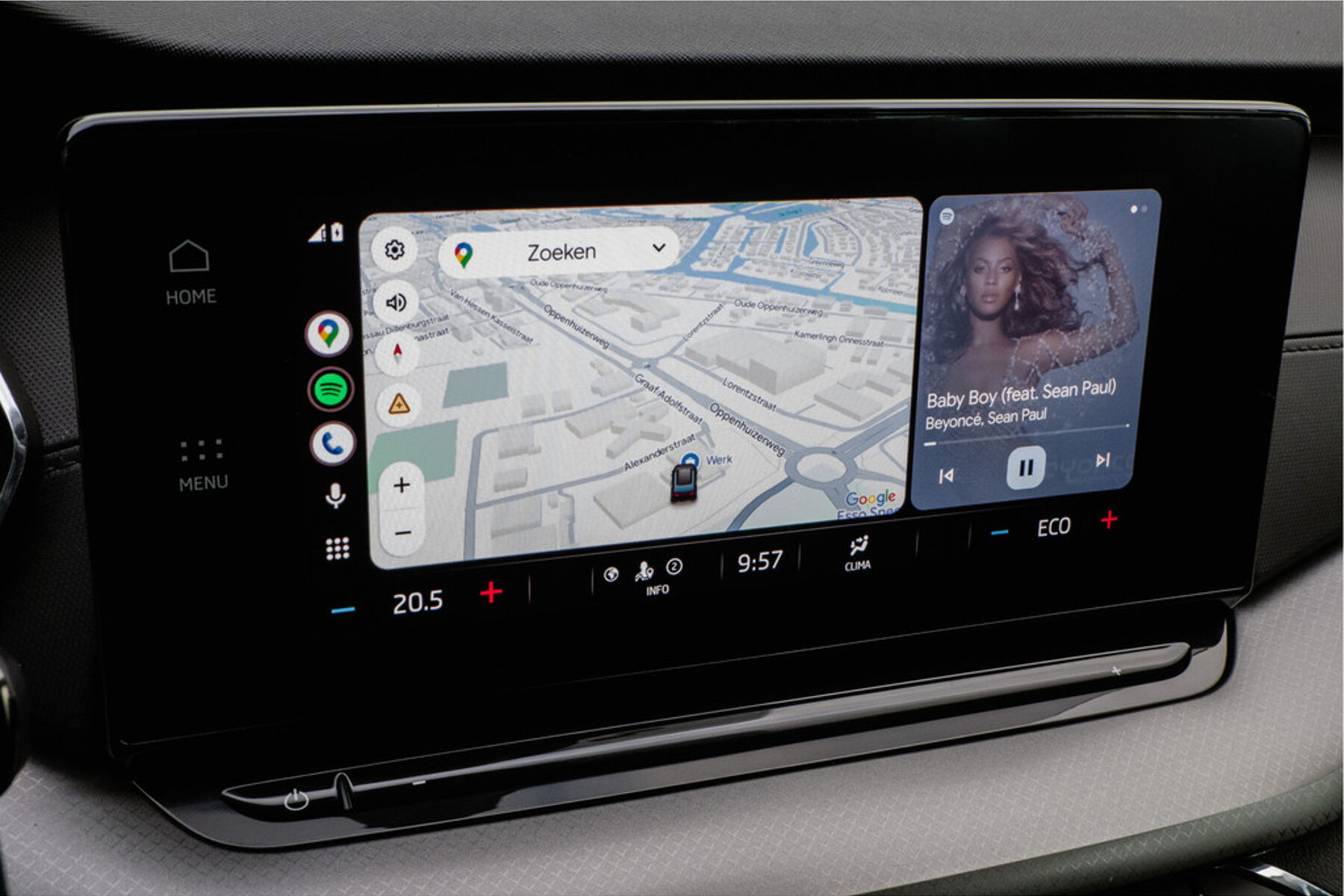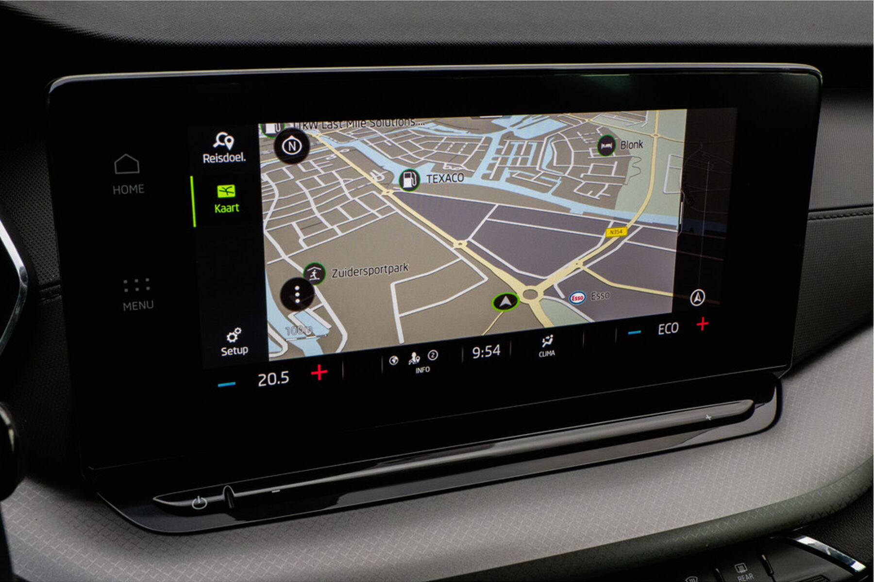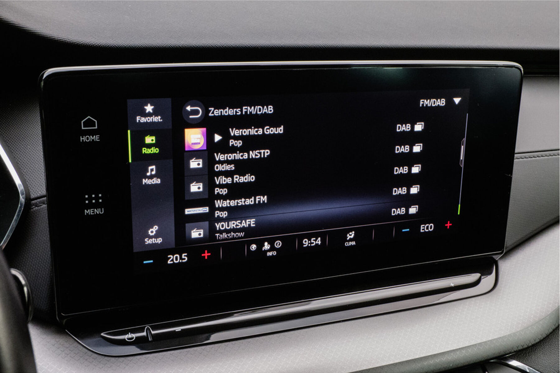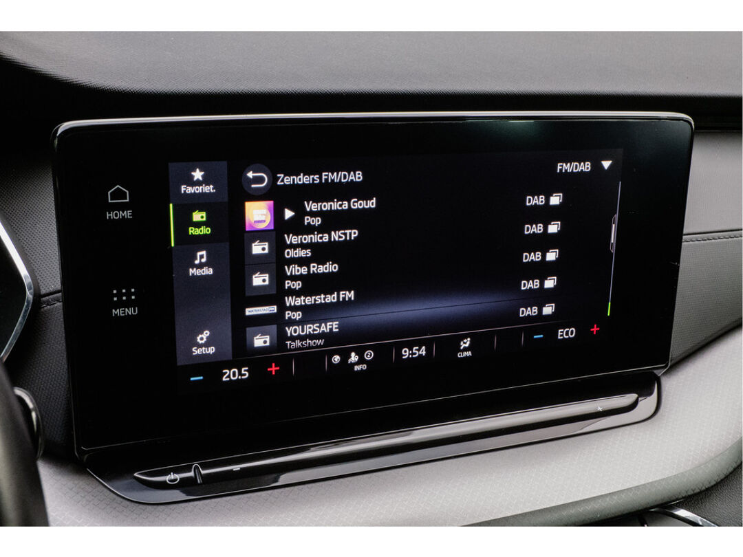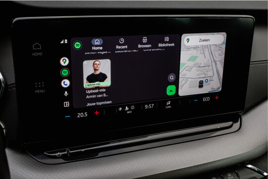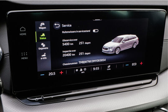 U leest alle belangrijke functies helder af dankzij het digitale dashboard. Zoals u van zo'n jonge auto mag verwachten, zijn hier ook de geavanceerde remote services aanwezig. Simpelweg met een app op uw smartphone controleert u op afstand de status van de auto en bedient u diverse functies. Verdient de accu van uw smartphone ook aandacht? Opladen kan zonder snoeren, met de draadloze telefoonlader. De automatische airconditioning zorgt voor een prettige binnentemperatuur. Inparkeren en uitparkeren kost geen enkele moeite dankzij de parkeersensoren. Ook dashboard met spraakbediening, full map navigatiesysteem, schakelpaddles aan het stuur, DAB ontvangst, regensensor en cruise control zijn aan boord.