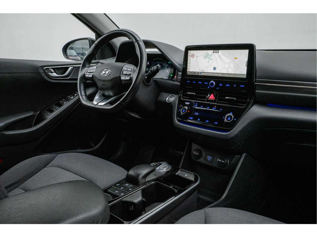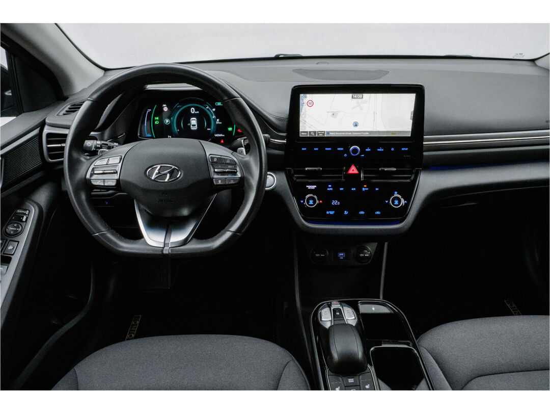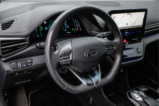 U ziet geen paaltje meer over het hoofd dankzij de achteruitrijcamera. Met adaptive cruise control houdt deze auto automatisch afstand tot uw voorligger. Deze Hyundai IONIQ is voorzien van remote services. Via uw smartphone bedient u diverse functies ook op afstand en krijgt u informatie over de status van uw auto. Uw favoriete muziek klinkt beter dan ooit met het ingebouwde high performance audiosysteem. Voorzien van een draadloze oplaadmogelijkheid voor telefoons om onderweg de accu van de smartphone bij te laden. En deze auto heeft ook full map navigatiesysteem, automatische airconditioning, schakelpaddles aan het stuur, DAB ontvangst, regensensor en keyless entry als standaard uitrusting.