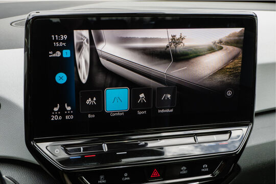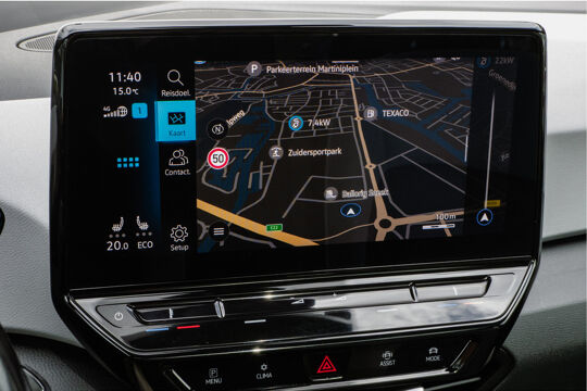 De achteruitrijcamera brengt precies in zicht wat zich achter u bevindt en toont een glashelder beeld op hoge resolutie. Een geluidssignaal waarschuwt hoeveel ruimte u nog heeft. Adaptive cruise control houdt de ingestelde snelheid vast en houdt afstand tot het voertuig voor u. Rijden-stilstaan, rijden-stilstaan. Niks is irritanter en vermoeiender dan filerijden. Daar heeft deze Volkswagen ID.3 een oplossing voor: de file assistent, die met radarmeting permanent het tempo aanpast op de voorligger. Zelfs als die stopt. Hoe is het met de banden, de accu en andere onderdelen? Connected Services maakt het inzichtelijk, 24/7 via de app. In deze ID.3 vindt u niet alleen schakelaars op het stuur om het navigatiesysteem te bedienen en het audiosysteem met DAB-ontvangst, maar er is ook spraakbediening. En deze auto heeft ook WIFI-hotspot, achteropkomend verkeer waarschuwing, automatische airconditioning, draadloos opladen, regensensor en keyless entry als standaard uitrusting.