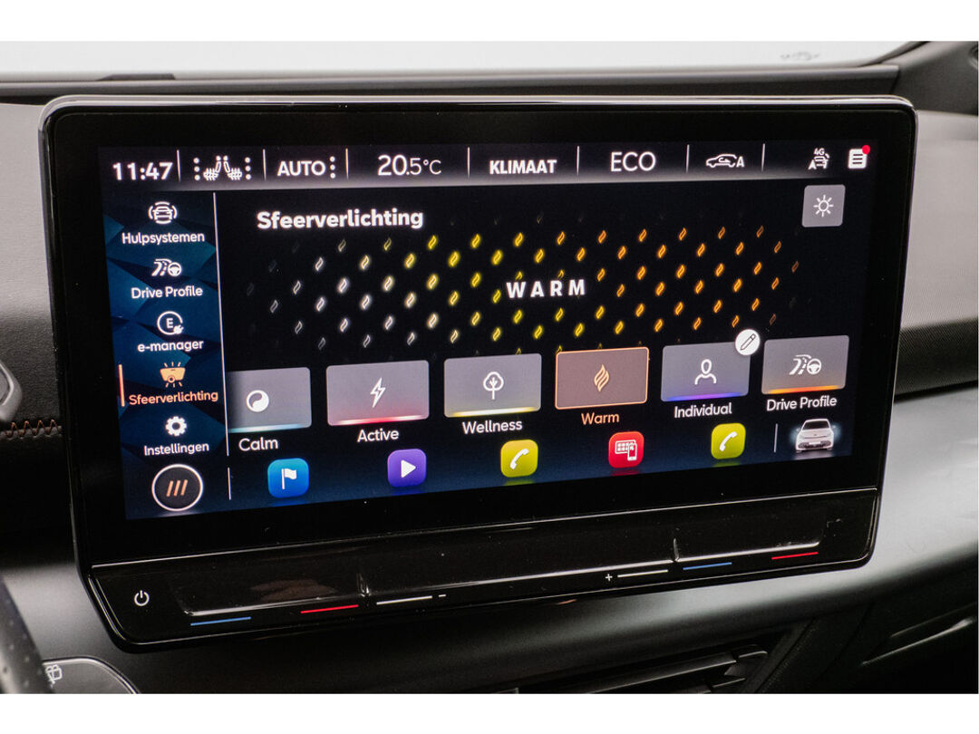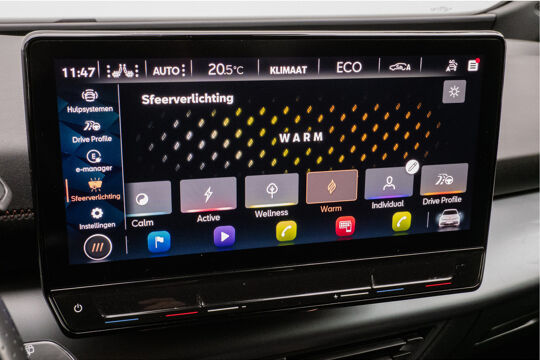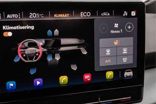 Deze auto is voorzien van innovatieve systemen die u onderweg begeleiden en beschermen. Verkeersbord-detectie herkent verkeersborden en toont deze op het instrumentarium van de auto. Deze CUPRA Born is ook behulpzaam als het gaat om een rechte koers. Het Lane-keeping systeem signaleert en corrigeert als u onbedoeld de rijstrooklijnen dreigt te overschrijden. Forward collision warning waarschuwt bij een dreigende aanrijding en vermindert de gevolgen van een ongeval. U bent mede dankzij vermoeidheidsherkenning, autonoom remsysteem en bandenspanningcontrolesysteem steeds veilig onderweg.
