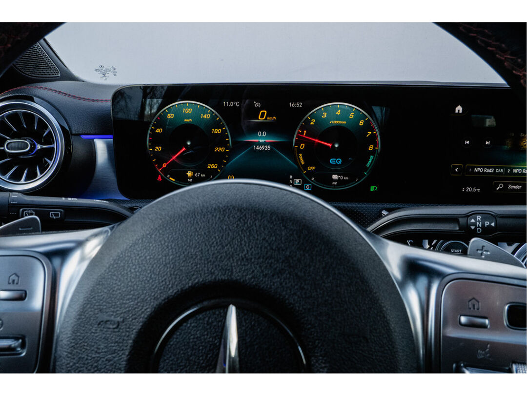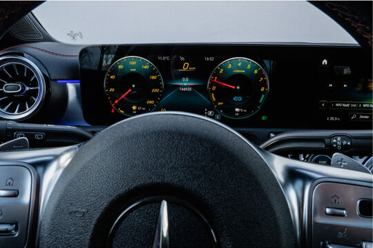 Het digitale dashboard geeft een nauwkeurig en makkelijk overzicht van alle belangrijke functies. Nooit meer problemen bij achteruitrijden of inparkeren. De achteruitrijcamera houdt alles in de gaten! Deze Mercedes-Benz CLA-klasse Shooting Brake is 'connected'. Belangrijke functies worden permanent gemeten en zijn uit te lezen via een speciale app, ook op afstand. Kies de muziek waarvan u houdt, dankzij de DAB-radio klinkt het altijd geweldig. Intussen bedient u het audiosysteem en het navigatiesysteem met harde schijf met de knoppen op het stuur of met uw stem. Natuurlijk is er ook electronic climate control aanwezig. De uitrusting van deze auto is met schakelpaddles aan het stuur, regensensor, cruise control, automatisch dimmende buitenspiegels en lederen versnellingspook behoorlijk compleet.