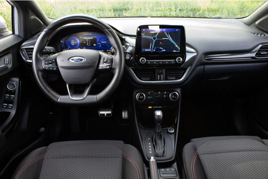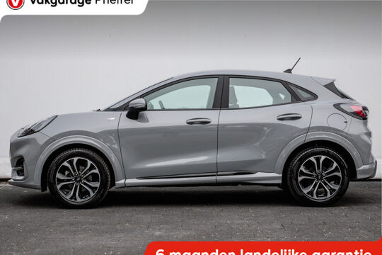 Van autorijden mag u best genieten. En dat gaat u ook, achter het stuur van deze Ford Puma, want dankzij de hoogwaardige technologie die in deze auto is verwerkt, is iedere kilometer een klein feestje. Het motorvermogen en de uitgebalanceerde wegligging zorgen dat u altijd in controle bent. Met zijn benzinemotor en automatische transmissie is dit een prima auto voor nog vele kilometers. Zijwaartse g-krachten worden solide opgevangen door de sportstoelen. Bij de uitrusting van deze Ford horen onder meer 17 inch lichtmetalen velgen, LED koplampen, sportonderstel, in delen neerklapbare achterbank, LED-achterlichten en verstelbare lendensteunen.