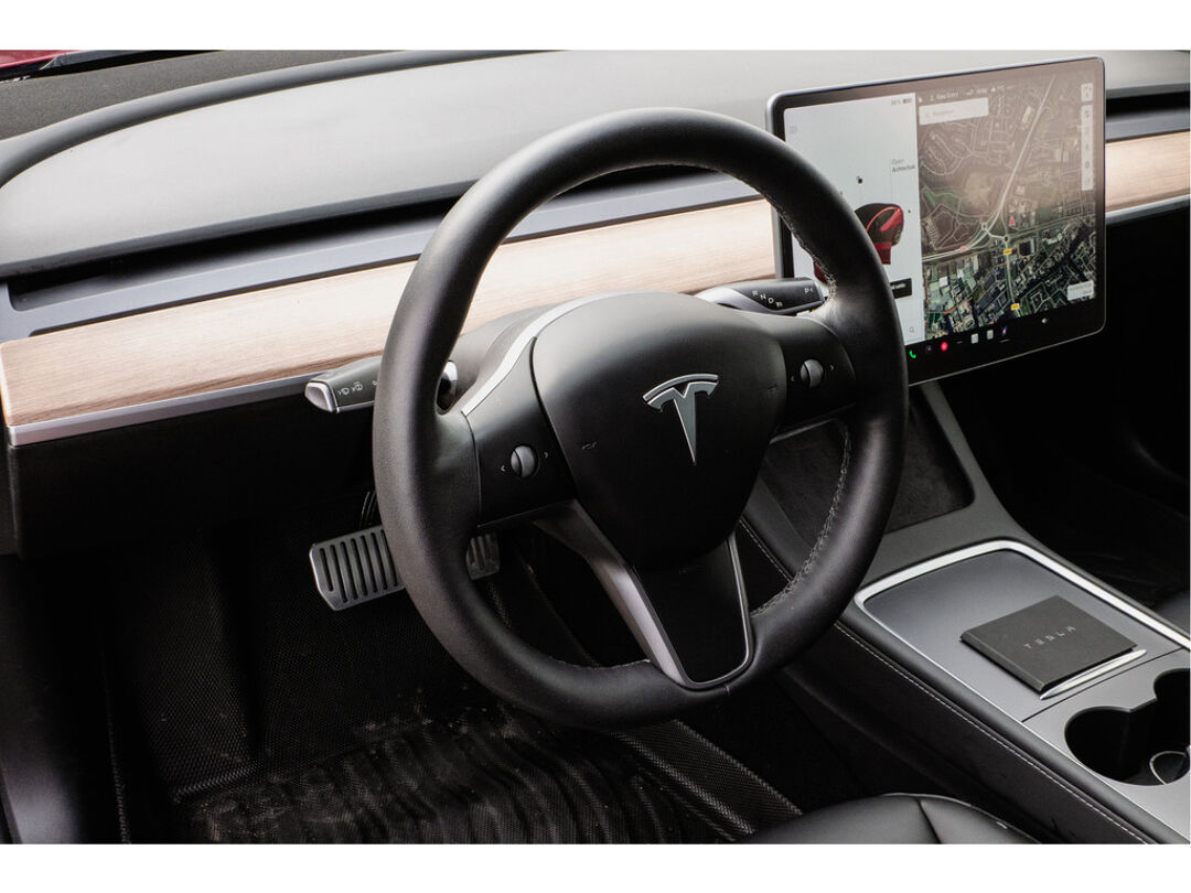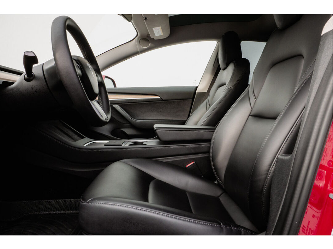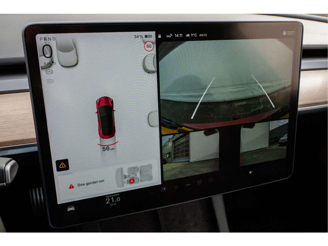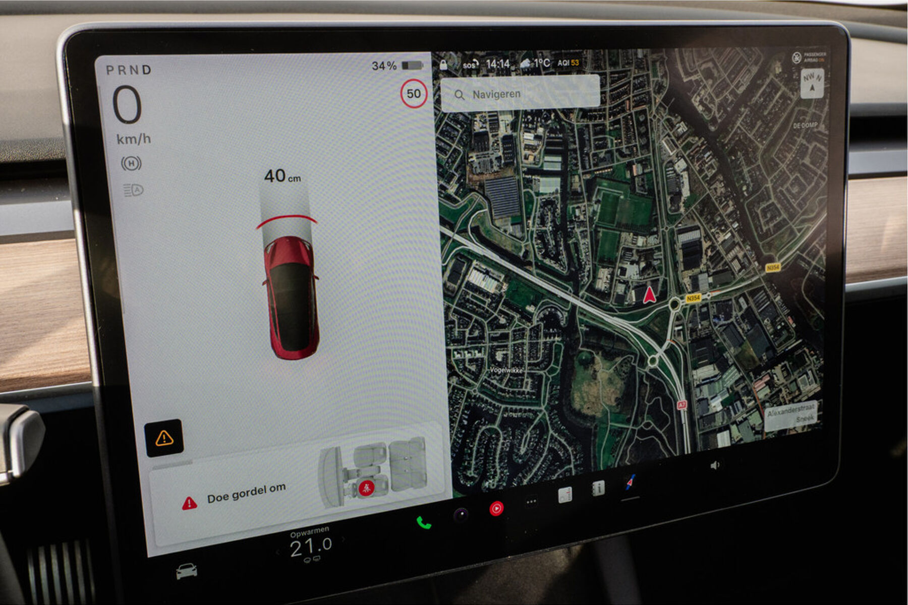 Zoals u mag verwachten van deze Tesla Model 3 is hij uitgerust met een reeks aan actieve veiligheidssystemen. Botsingen met een voorligger gebeuren relatief vaak. De forward collision warning slaat tijdig alarm als dat risico ontstaat, zodat u kunt ingrijpen. Bovenop deze veiligheidsfeatures heeft deze Tesla bovendien dodehoekdetectie en autonoom remsysteem.