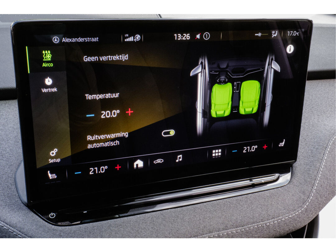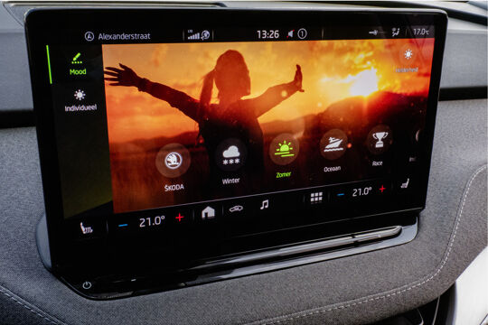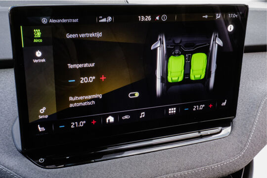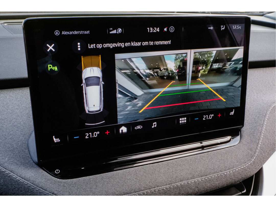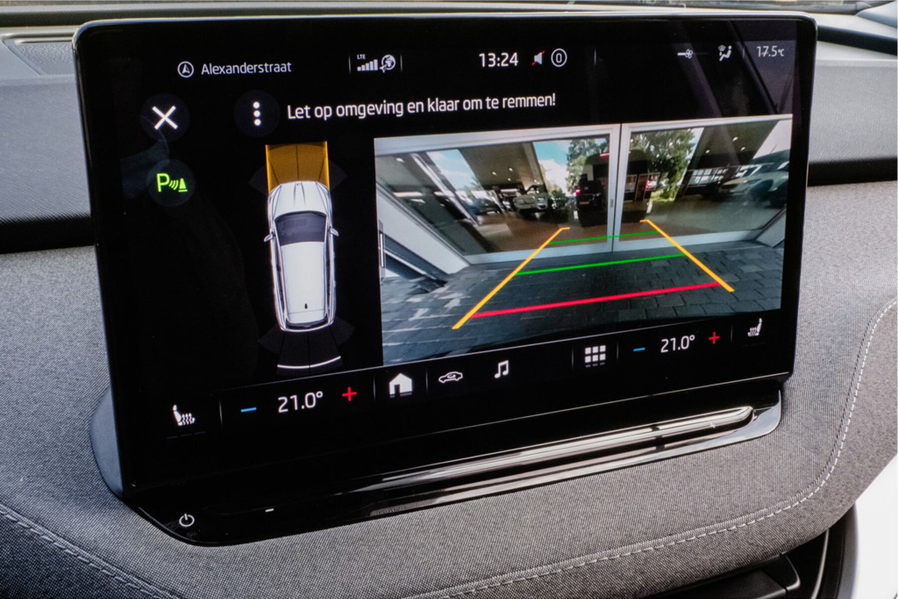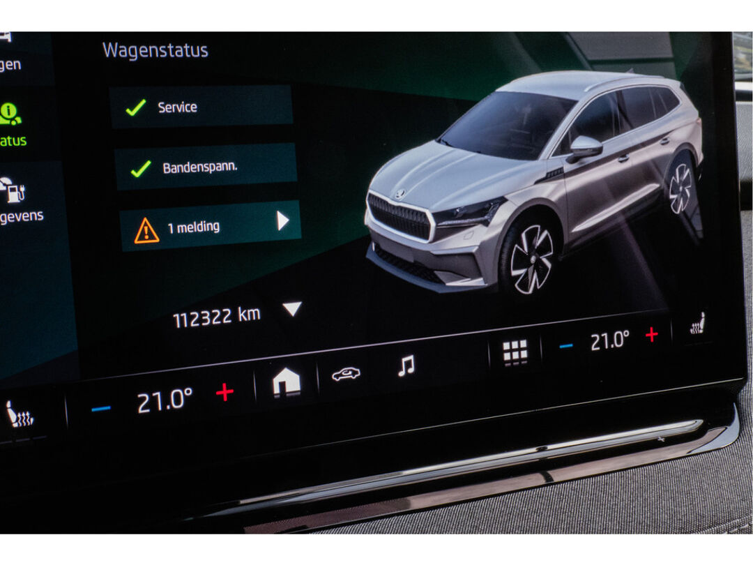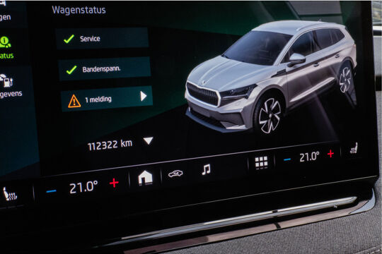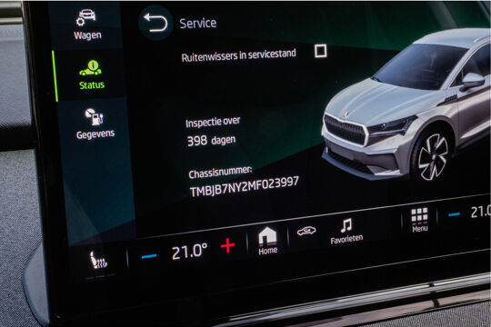 De ŠKODA Enyaq iV is uw trouwe partner onderweg, want hij houdt continu voor u de situatie op en om de weg in de gaten. Volautomatische veiligheidssystemen kunnen daarbij ingrijpen om u voor gevaarlijke situaties te behoeden. Deze ŠKODA Enyaq iV is ook behulpzaam als het gaat om een rechte koers. Het Lane-keeping systeem signaleert en corrigeert als u onbedoeld de rijstrooklijnen dreigt te overschrijden. Op een kop-staartbotsing zit niemand te wachten. Daarom is de forward collision warning onderweg constant alert en berekent via een sensor de veilige afstand tot voorliggers. Bovenop deze veiligheidsfeatures heeft deze ŠKODA bovendien autonoom remsysteem en bandenspanningcontrolesysteem.