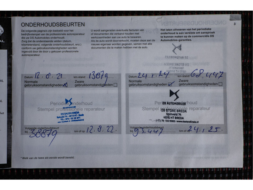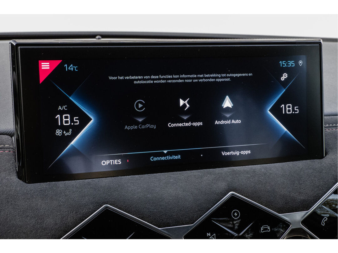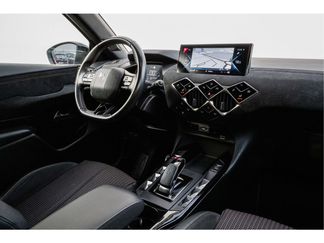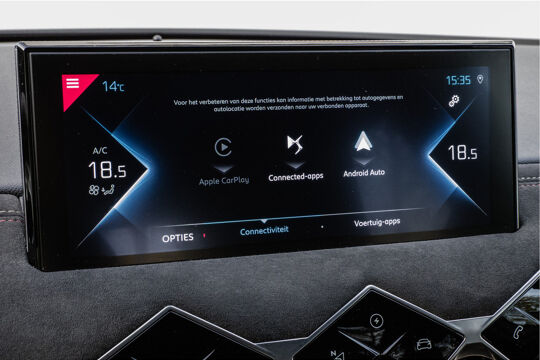 Via het digitale dashboard bent u permanent op de hoogte van alle informatie die u nodig heeft voor een veilige rit. De hoogwaardige achteruitrijcamera en het display met hoge resolutie zorgen dat helemaal niets u meer ontgaat van wat er achter de auto gebeurt. Ingericht op Connected Services, voor een nog veiligere en comfortabelere rit. Wat wilt u onderweg horen? Er is volop keus, dankzij bluetooth. Het full map navigatiesysteem is met het audiosysteem gecombineerd. Met de automatische airconditioning selecteert u de gewenste temperatuur. Het systeem doet de rest. Met dashboard met spraakbediening, DAB ontvangst, regensensor, cruise control, keyless entry en automatisch dimmende binnenspiegel is deze DS helemaal compleet.