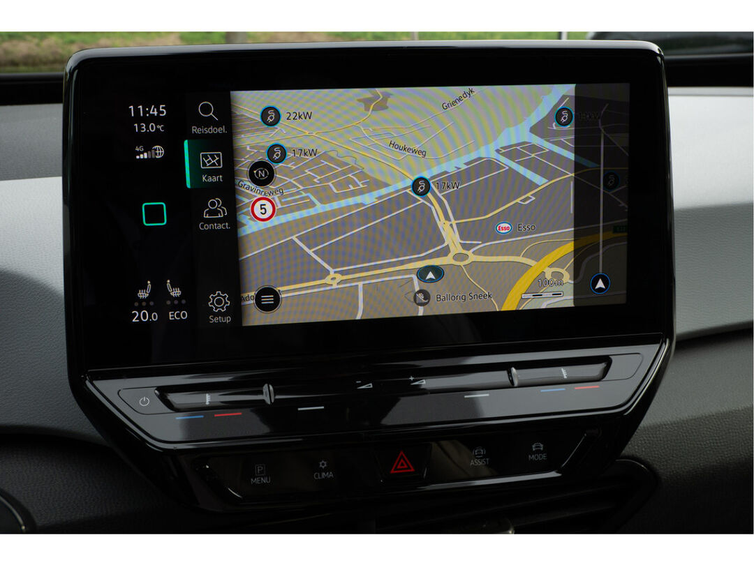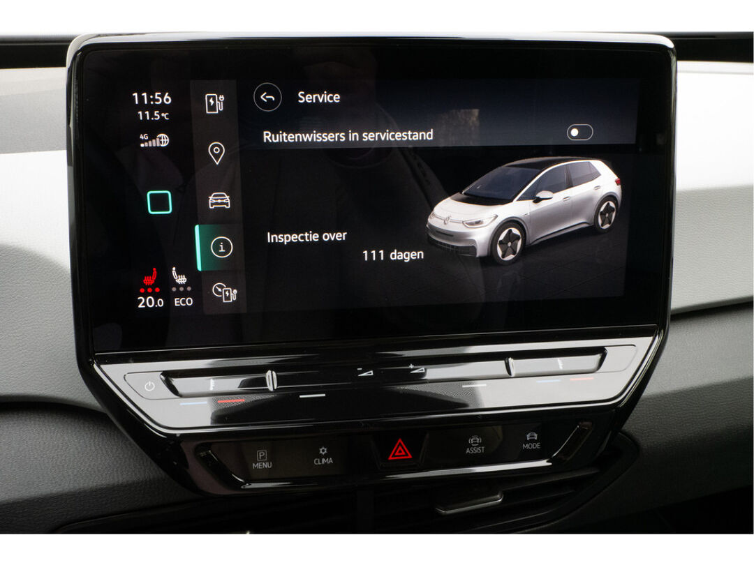 Pragmatisch en veilig als deze auto is, beschikt hij over diverse veiligheidssystemen. Verkeersbord-detectie herkent verkeersborden en toont deze op het instrumentarium van de auto. Met het Lane-keeping systeem komt u nooit per ongeluk buiten de rijstrook. Deze Volkswagen ID.3 blijft altijd alert. Zo wordt gebruik gemaakt van forward collision warning. Bij het mogelijke risico op een aanrijding met een voertuig voor u, slaat het systeem alarm. Ook helpen het hill hold functie, vermoeidheidsherkenning, autonoom remsysteem en bandenspanningcontrolesysteem, uw rit tot een veilige rit te maken.