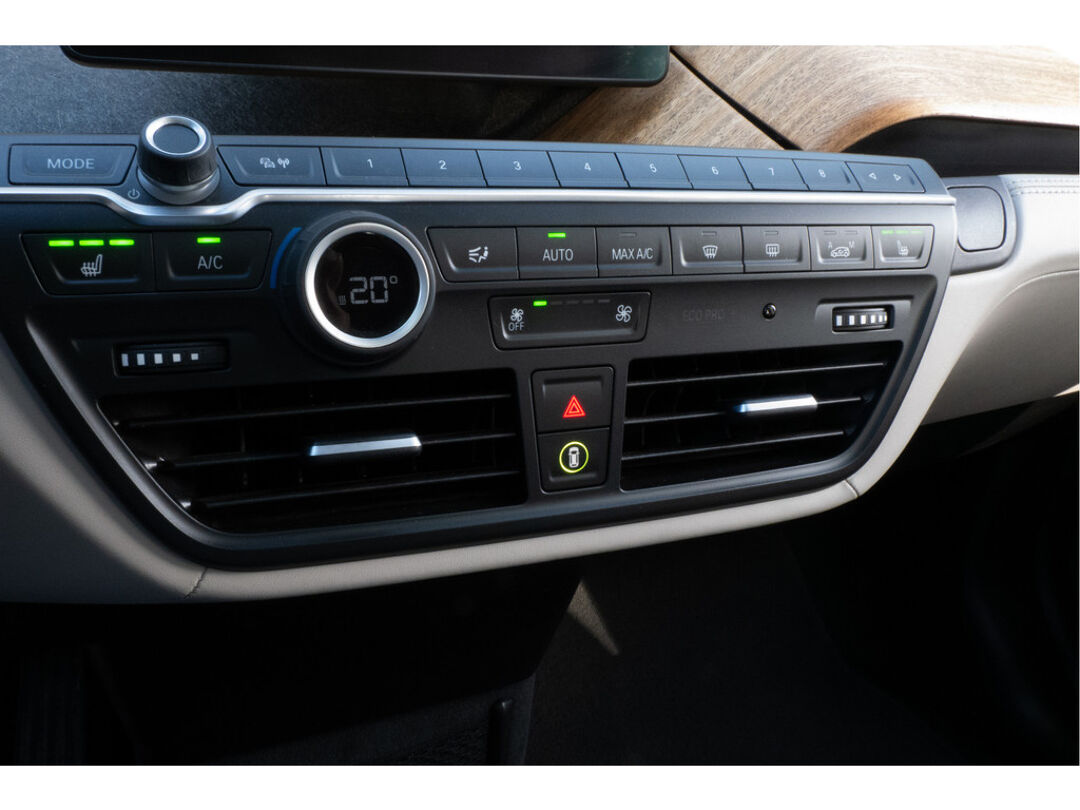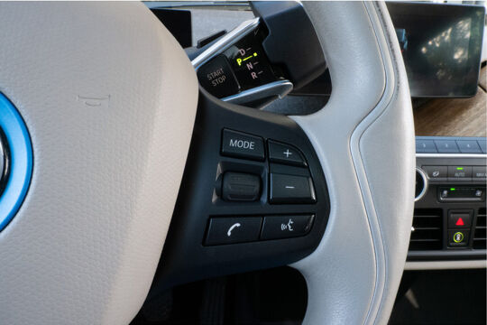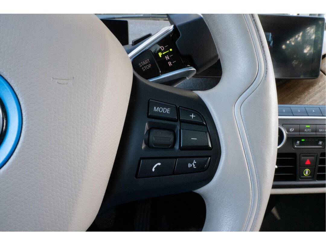 De kortste weg, de zuinigste weg, de snelste weg... elke weg is te vinden met het navigatiesysteem. U verwacht natuurlijk automatische airconditioning in deze auto, en die is er dan ook. Laat u niet afleiden door gerommel aan de audioknoppen. De audiobediening op het stuur zorgt dat u altijd geconcentreerd blijft. Parkeerplekken worden er niet ruimer op. Maar met de aanwezige parkeersensoren krijgt u deze BMW i3 zonder problemen op z'n plaats. In deze BMW kunt u zich concentreren op het verkeer, terwijl de auto de omgeving voor u in de gaten houdt. Een automatisch inschakelbare verlichting zorgt dat de verlichting aangaat als het donkerder wordt - in tunnels bijvoorbeeld - en de regensensor schakelt de ruitenwissers in als het nodig is. U hoeft er niets aan te doen. De BMW is standaard voorzien van: cruise control, buitentemperatuurmeter, automatisch dimmende buitenspiegels, lederen stuur, centrale deurvergrendeling met afstandsbediening en boordcomputer.