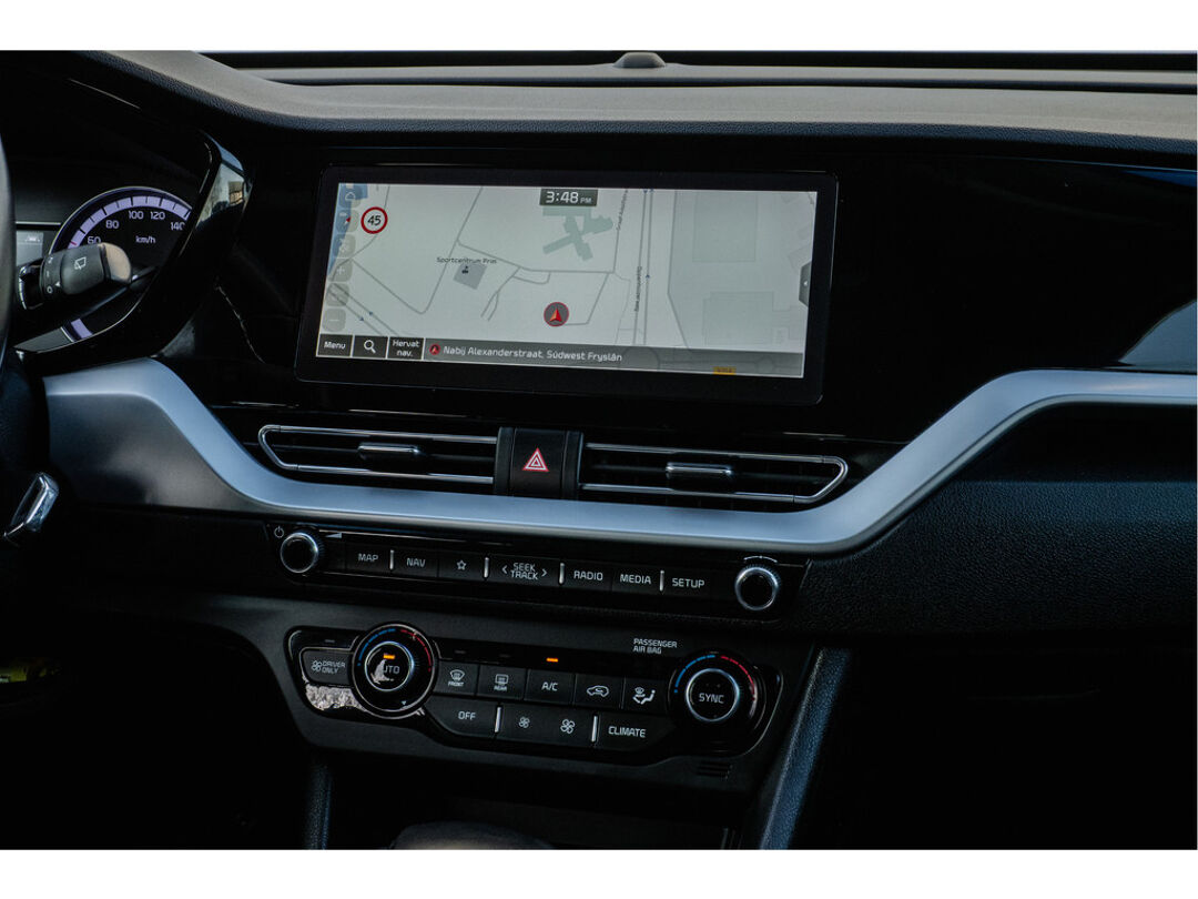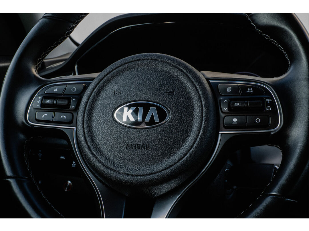 Soepel inparkeren in de krapste parkeervakken. De achteruitrijcamera maakt het mogelijk. Adaptive cruise control houdt de ingestelde snelheid vast en houdt afstand tot het voertuig voor u. Er is geen bestemming die het aanwezige full map navigatiesysteem niet kent. Dat rijdt lekker! In een auto als deze kunt u niet zonder automatische airconditioning, zodat de temperatuur altijd goed is. Audio-aanpassingen doen zonder de weg uit het oog te verliezen? Daar zorgt de audiobediening op het stuur voor! Deze Kia is voorzien van schakelpaddles aan het stuur, DAB ontvangst, regensensor, automatisch dimmende binnenspiegel, centrale deurvergrendeling met afstandsbediening en bagage afdekhoes.