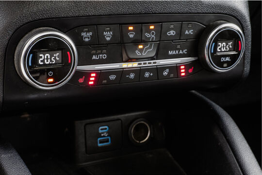 Pragmatisch en veilig als deze auto is, beschikt hij over diverse veiligheidssystemen. Het Lane-keeping systeem zorgt voor een automatisch constante positie binnen de rijstrook. Afdwalen is uitgesloten. Het forward collision warning-systeem is constant alert en detecteert via sensor de afstand tot voorliggers. Wordt die te klein, dan volgt een automatische waarschuwing. In deze Ford vinden we verder een dodehoekdetectie, hill hold functie, autonoom remsysteem en bandenspanningcontrolesysteem.