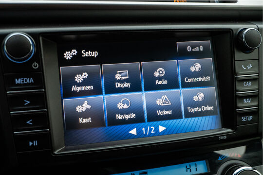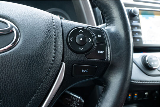 De nieuwste veiligheidssystemen komen in deze Toyota RAV4 samen. Onderweg fungeert de verkeersbord-detectie als het ware als uw bijrijder en attendeert u op de verkeersborden langs de weg. Het Lane-keeping systeem zorgt voor een automatisch constante positie binnen de rijstrook. Afdwalen is uitgesloten. Bij een noodstop gebeurt er heel veel tegelijk: gas los, rempedaal in, kijken, sturen. Dan is het een veilig gevoel dat de Brake Assist uw remactie tot het maximum oppept. In deze Toyota vinden we verder een hill hold functie en bandenspanningcontrolesysteem.