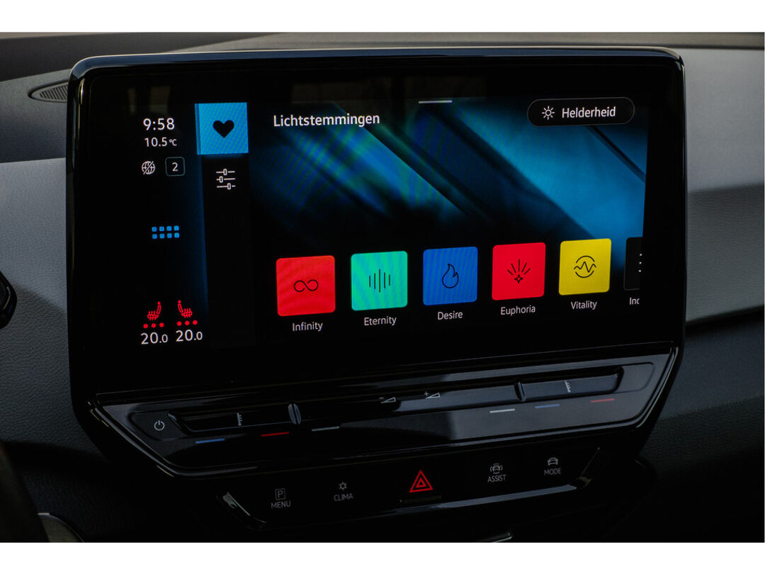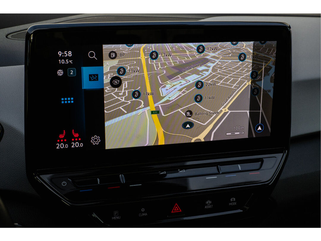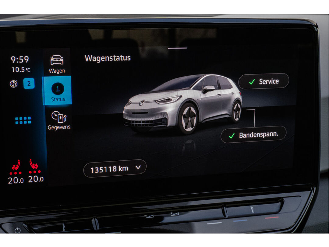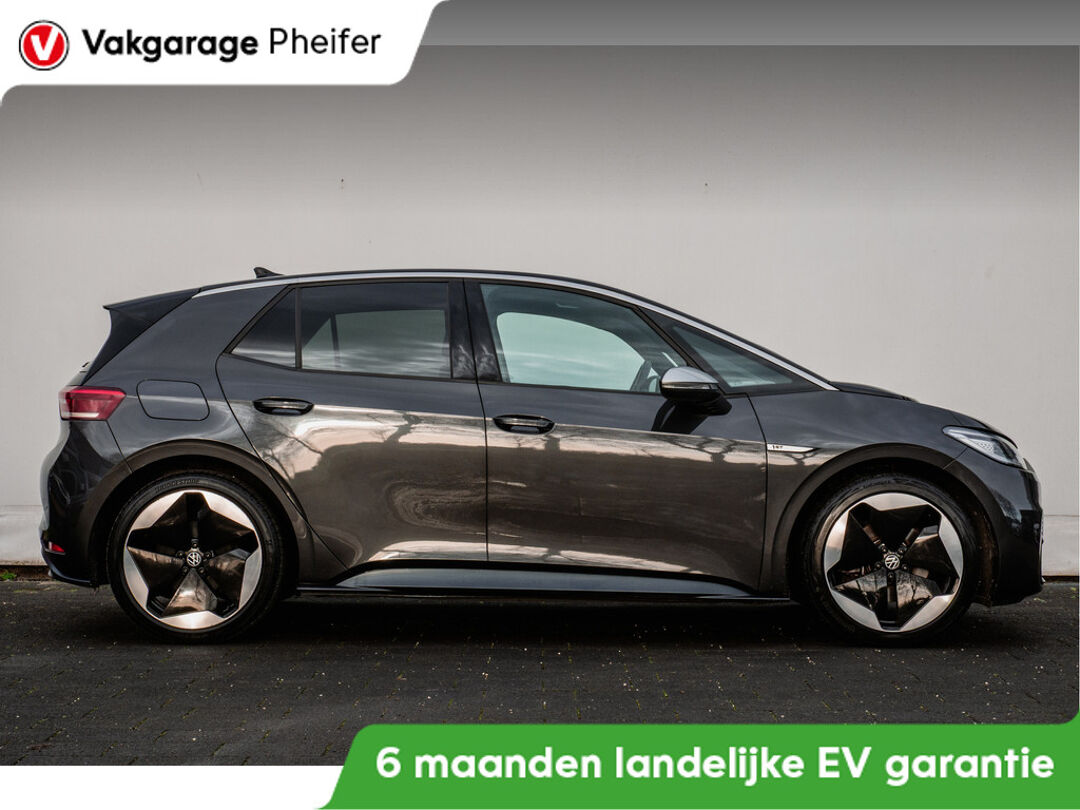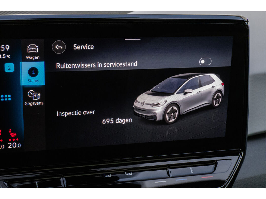 Hij is doordacht innovatief en duurzaam als geen ander: de elektrische Volkswagen ID.3 biedt met zijn elektrische aandrijving een ongekende rijervaring. De prestaties van de elektromotor kunnen de vergelijking met een brandstofmotor moeiteloos aan. Een belangrijke eigenschap van iedere Volkswagen is zijn duurzaamheid. Dat ziet u ook aan deze ID.3. Een krachtige motor geeft deze auto zijn sportieve prestaties. Koude start? Niet met de verwarmbare voorstoelen! En allebei ook nog eens voorzien van massagefunctie tegen stramme rug en schouders. Geniet van de lichtinval en het uitzicht van het grote glazen panoramadak. De geavanceerde matrix LED-verlichting in de koplampen levert maximaal helder zicht en past zich subtiel aan zodra er een tegenligger komt. Zonder lichtkwaliteitsverlies! Verder is de Volkswagen uitgerust met: 20 inch lichtmetalen velgen, donker getint glas achter, in delen neerklapbare achterbank, LED-achterlichten, verstelbare lendensteunen en snelheidsafhankelijke stuurbekrachtiging.
