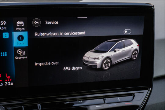 In de Volkswagen ID.3 heeft uw veiligheid en die van uw omgeving prioriteit. Een belangrijke bijdrage aan de veiligheid onderweg levert de verkeersbord-detectie. Indien u onbedoeld de rijstrook lijkt te verlaten, reageert het Lane-keeping systeem meteen en corrigeert. Deze Volkswagen ID.3 blijft altijd alert. Zo wordt gebruik gemaakt van forward collision warning. Bij het mogelijke risico op een aanrijding met een voertuig voor u, slaat het systeem alarm. Dankzij veiligheidsvoorzieningen als head-up display, dodehoekdetectie, hill hold functie, vermoeidheidsherkenning, autonoom remsysteem en bandenspanningcontrolesysteem, bent u steeds veilig onderweg.