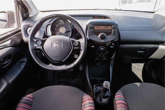 Vergis u niet met deze Citroën C1. Hij lijkt klein, maar het is een rappe dondersteen. Deze Citroën is voorzien van een pittige benzinemotor en een handgeschakelde vijfversnellingsbak. Tot de voorzieningen van deze auto behoren LED-dagrijverlichting, in delen neerklapbare achterbank en snelheidsafhankelijke stuurbekrachtiging.